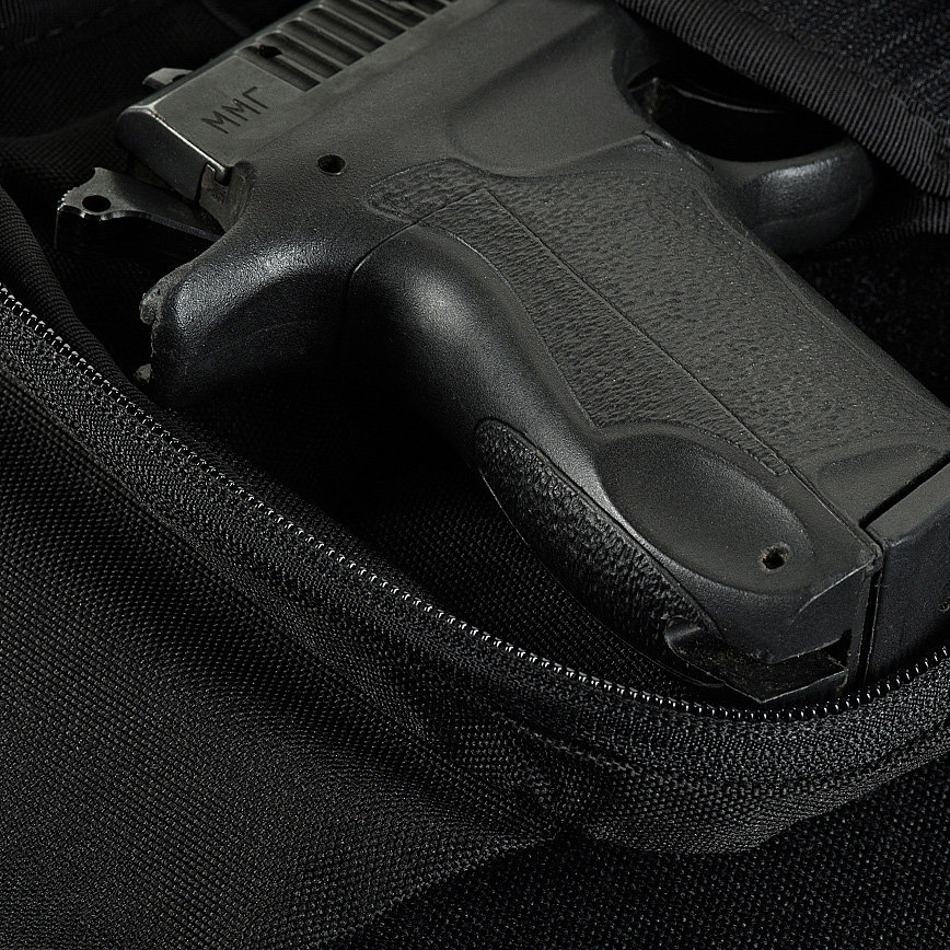- Torba na ramie z kaburą przystosowana do skrytego przenoszenia broni krótkiej. Wewnątrz komory głównej umieszczono mocowaną na rzep uniwersalną kaburę, pasującą do większości pistoletów w tym Glock 17/19, Colt 1911, CZ-75, Walther P99.