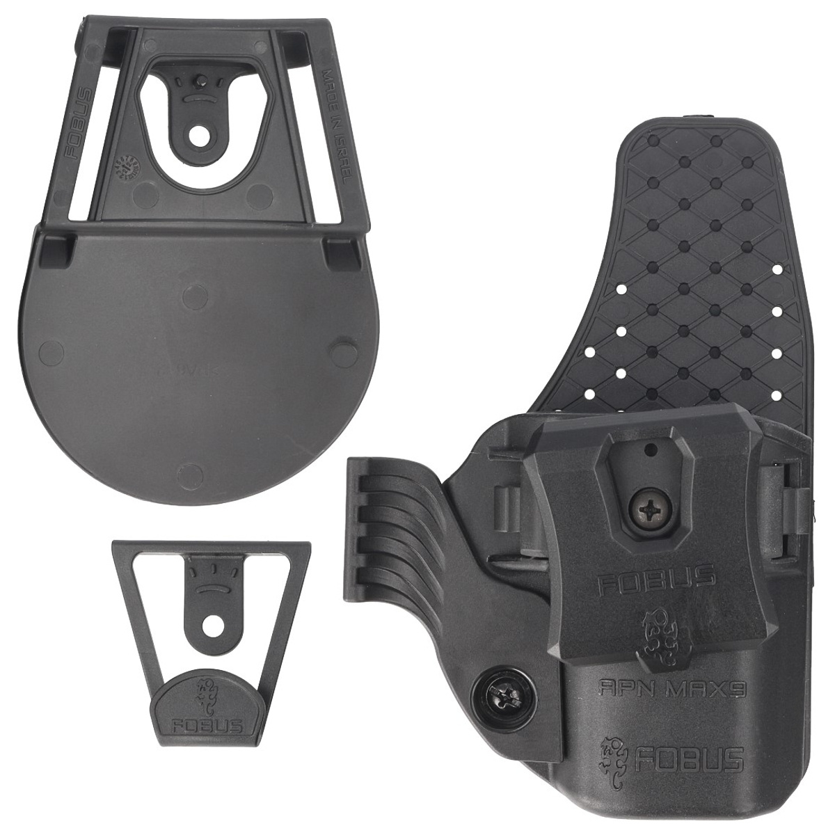 APN MAX9 niskoprofilowa prawo / lewostronna kabura otwarta izraelskiej firmy Fobus typu FIT (dedykowana do broni). APN to kabura wewnętrzna IWB (Inside the Waist Band) zaprojektowana do skrytego noszenia po wewnętrznej stronie spodni, mocowana zaczepianym o pas hakiem J Hook lub kabura zewnętrzna typu OWB (Outside the Waist Band) przystosowana do standardowego przenoszenia na pasie. Bardzo trwała i lekka, doskonale wyprofilowana dla maksymalnego komfortu, świetnie przylega do sylwetki pozwalając na skryte przenoszenie broni, niezwykle wygodna podczas codziennego noszenia w ukryciu, wentylowana, można ją myć w całości. Przystosowania kabury zarówno dla prawo jak i leworęcznych użytkowników bez żadnych narzędzi.