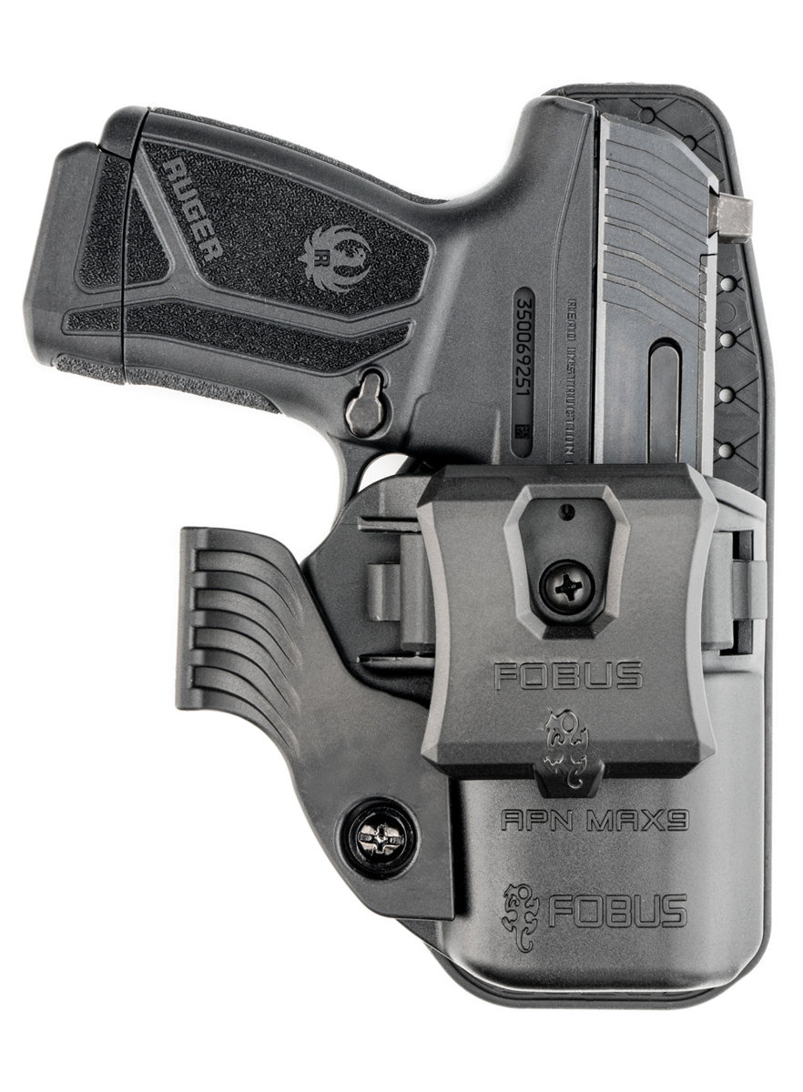 - APN MAX9 prawo / lewostronna kabura wewnętrzna IWB (Inside the Waist Band) lub zewnętrzna OWB (Outside the Waist Band). Zaprojektowana do skrytego noszenia po wewnętrznej stronie spodni lub do noszenia na pasie. Do pistoletU Ruger MAX9..