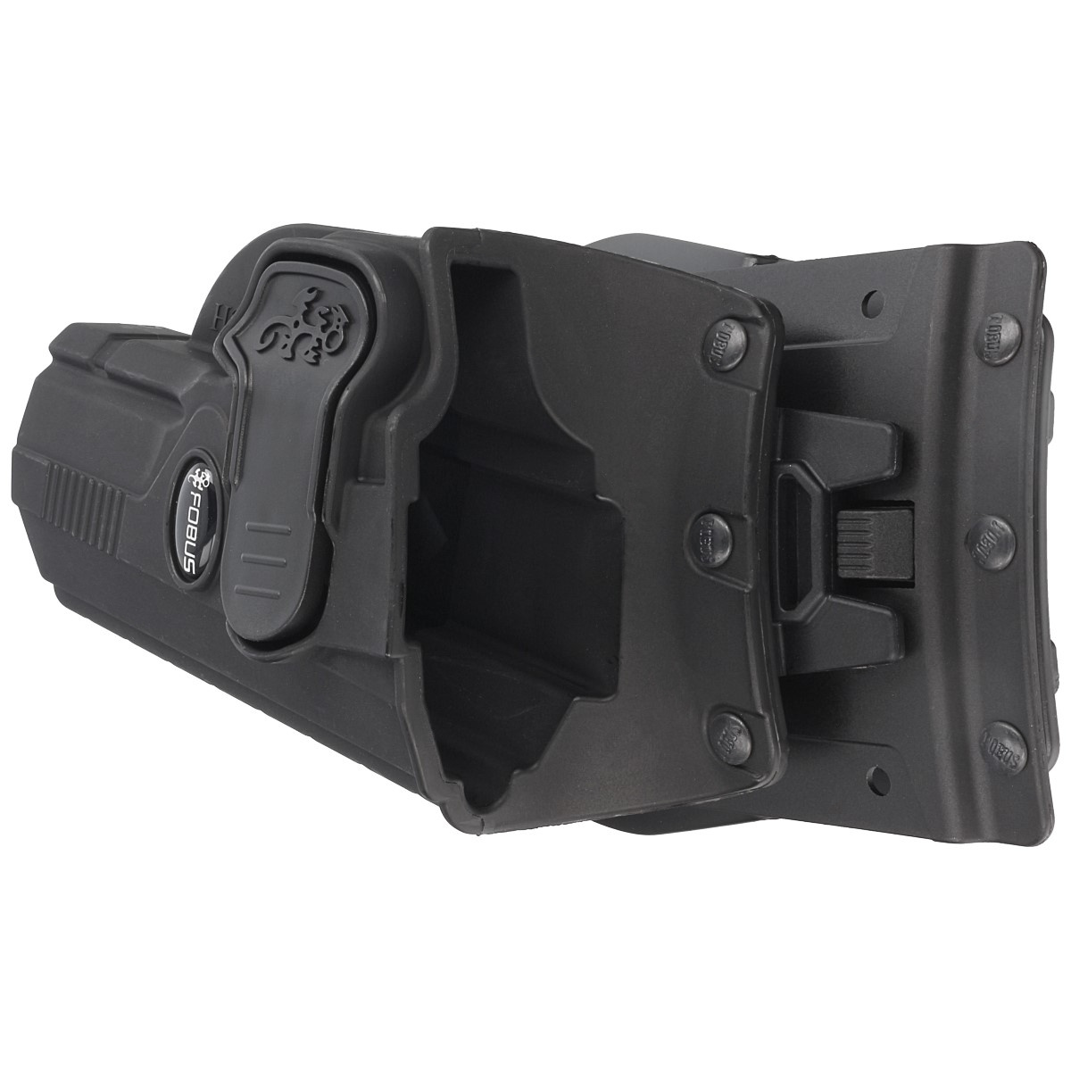 CH Series - profesjonalna seria kabur Fobus, skoncentrowana na bezpieczeństwie. Wyposażona w mechanizm zabezpieczający Trigger Guard Locking System (CH Rapid Release System), który gwarantuje bezpieczne przenoszenie broni w kaburze, zapobiegając jej przypadkowemu wypadnięciu podczas przemieszczania się. Dodatkowo, wyprofilowany przycisk mechanizmu blokującego wymusza prawidłowy uchwyt broni podczas jej dobywania. Po dobyciu broni palec wskazujący nadal znajduje się nad spustem w prawidłowej pozycji strzeleckiej. Zabezpieczenie utrudnia nieautoryzowane wyjęcie broni z kabury, co zwiększa bezpieczeństwo, szczególnie w tłumie. Idealna dla osób szukających niezawodnego rozwiązania do przenoszenia broni w trudnych warunkach.