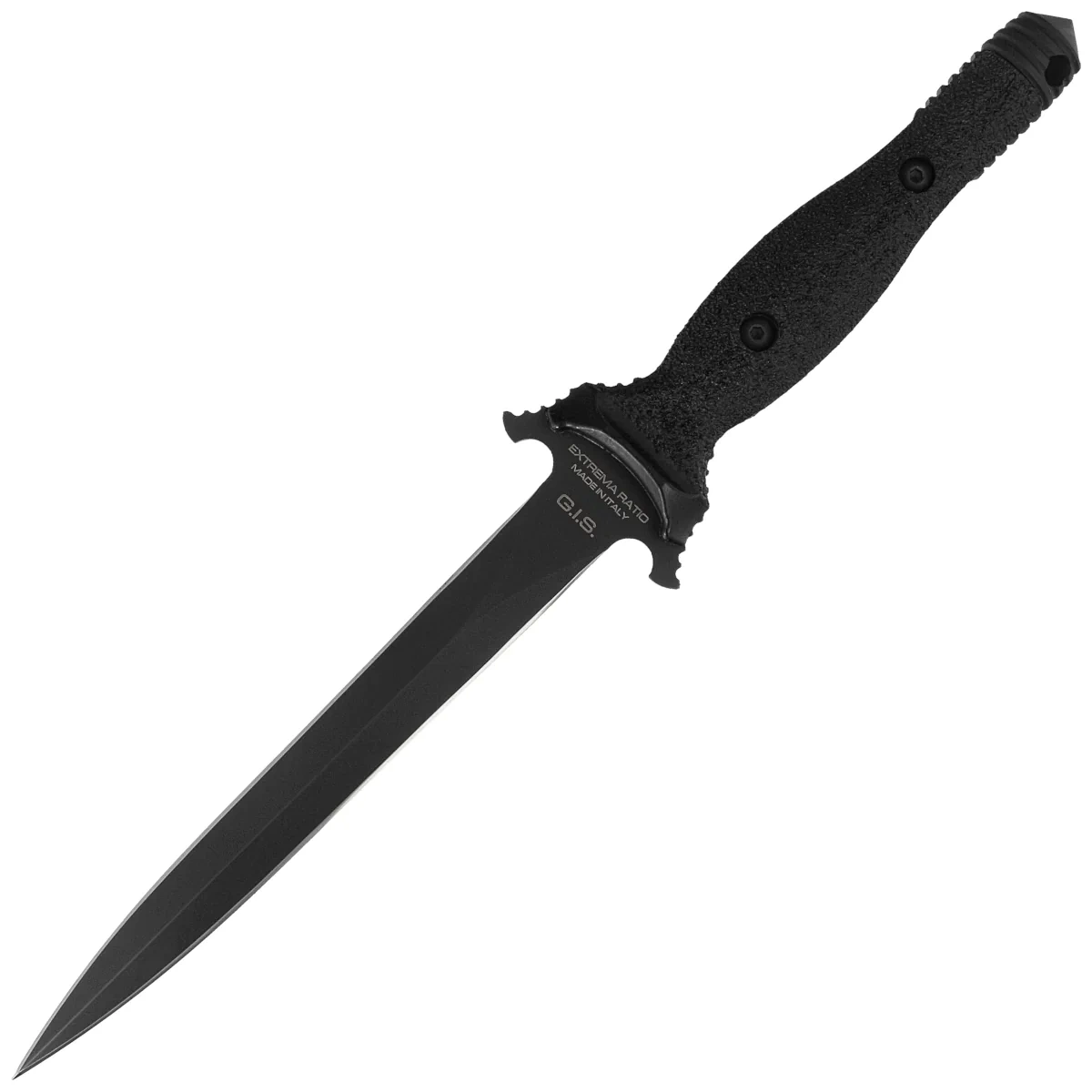 Głownia - niezwykle smukła, grubości 6.3 mm o kształcie Dagger z obusiecznym symetrycznym ostrzem. Klingę pokryto polerowaną chemicznie, nierefleksyjną powłoką MIL-C-13924 BURNISHING. Obustronne gładkie ostrze Plain wyprowadzono szlifem płaskim (Flat grind) zapewniającym doskonałe właściwości tnące a zwłaszcza penetracyjne. U nasady głowni double finger guard obustronny jelec / karbowana osłona chroniąca dłoń przed zsunięciem się na ostrze. Na klindze wypalono logo G.I.S. (Special Intervention Group).