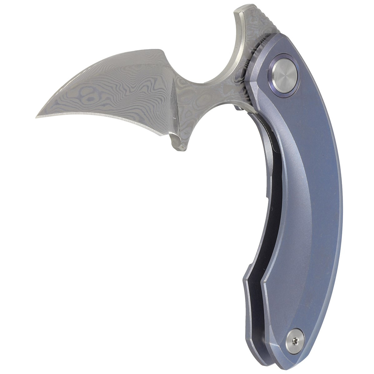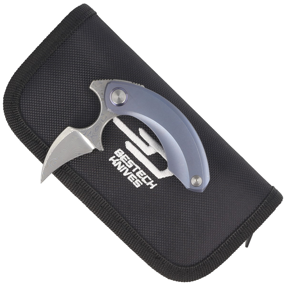 - Strelit Blue Titanium, Damascus niezwykły folder push dagger dla wymagających odbiorców, efekt współpracy polskiego projektanta Ostapa Hela i firmy Bestech Knives. Ergonomiczna rękojeść, niezwykła stal ostrza!!!