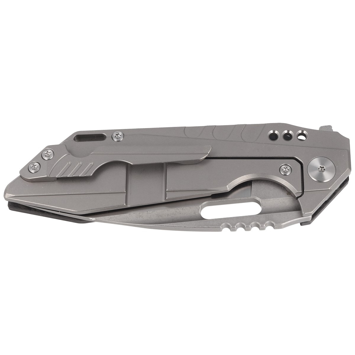 Głownia - szerokatypu Spear Point z efektownym wykończeniem Two Tone, szlif satynowany, pozostała część wykończona metodą Stonewashed. Wydatny brzusiec wydłuża długość krawędzi tnącej w stosunku do długości klingi zbiegając się w kierunku ostrego jak igła czubka noża. Grubość klingi zapewnia wysoką wytrzymałość podczas gdy wysoki, płaski szlif daje doskonałą geometrię krawędzi tnącej oraz ekstremalną wydajność cięcia. Dodatkowym wzmocnieniem jest długie zbrocze. Ceramiczne łożyska kulkowe wspomagają otwarcie ostrza za pomocą szybkiej płetwy flippera (index-finger flipper) po otwarciu pełniącej funkcję jelca. Nóź możemy również otworzyć przy użyciu otworu w klindze (thumb hole). Całość blokowana jest sprawdzoną i popularną blokadą frame lock ze stalową wkładką zabezpieczającą przed wycieraniem czoła blokady.