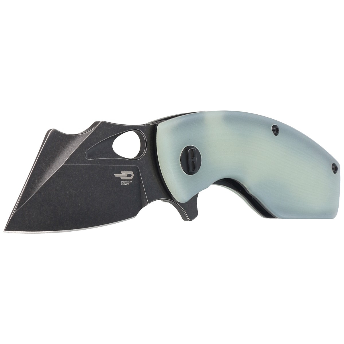 Rękojeść - okładziny z G10, praktycznie niezniszczalnego tworzywa niewrażliwego na warunki atmosferyczne, odpornego na chemikalia i uszkodzenia mechaniczne Fazowane krawędzie okładek eliminują ostre ranty a charakterystyczne teksturowanie powierzchni poprawia pewność uchwytu. Masywny backspacer do którego przymocowano okładziny gwarantuje sztywność i wytrzymałość całej konstrukcji. Jednopozycyjny, prawostronny klips umożliwia przenoszenie noża w pozycji tip-up, czubkiem ostrza ku górze.