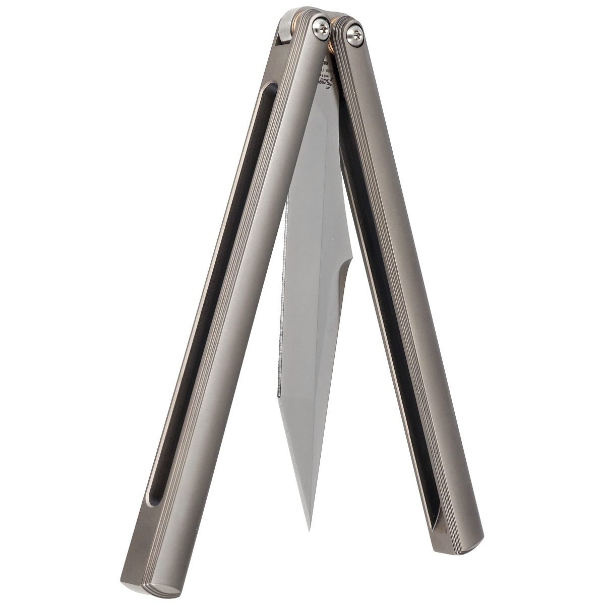 Rękojeść - okładziny z piaskowanego tytanu o lekko szorstkiej fakturze. Fazowane krawędzie okładek eliminują ostre krawędzie. Osie pivota osadzone niezwykle blisko siebie ze względu na brak kołków stop pina. Takie rozwiązanie pozwala na zdecydowanie płynniejszą pracę, co ułatwia wykonywanie skomplikowanych tricków. Z tego samego powodu projektant zrezygnował z belki zabezpieczającej ramiona w pozycji otwartej, wychodząc z założenia, że głównym celem jego balisonga ma być dostarczanie zabawy,