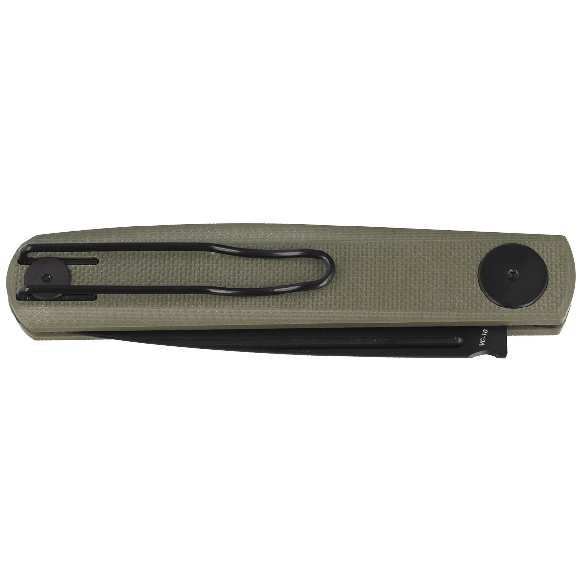 - Gslip Compact Green G10, Black niezwykle lekki (50g) nóż składany EDC, efekt współpracy polskiego projektanta Ostapa Hela i firmy RealSteel Knives. Rękojeść, z G10 stal nierdzewna VG-10 na ostrzu, łatwy do przenoszenia. Niezawodne narzędzie dla gentlemana