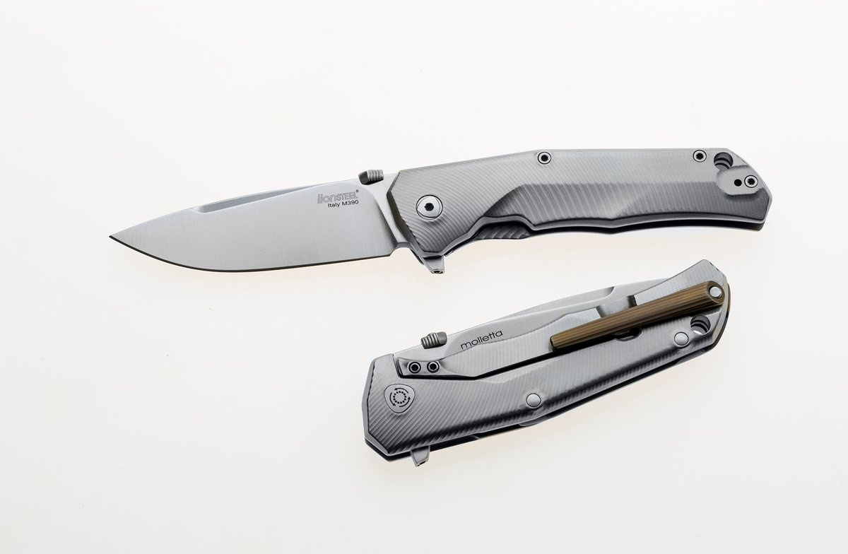 T.R.E. Grey / Bronze Titanium, Stone Washed doskonały nóż E.D.C. włoskiej manufaktury LionSteel, wyposażony w system Three Rapid Exchange. Dodatkowo w zestawie klucz KKS 68, brelok z bitami Torx T6 i Torx T8 do regulacji foldera, Flippera, dysku Thum Stud oraz klipsa. Zdobywca prestiżowej nagrody noża roku Overall Knife of The Year magazynu Blade na targach Blade Show 2015.