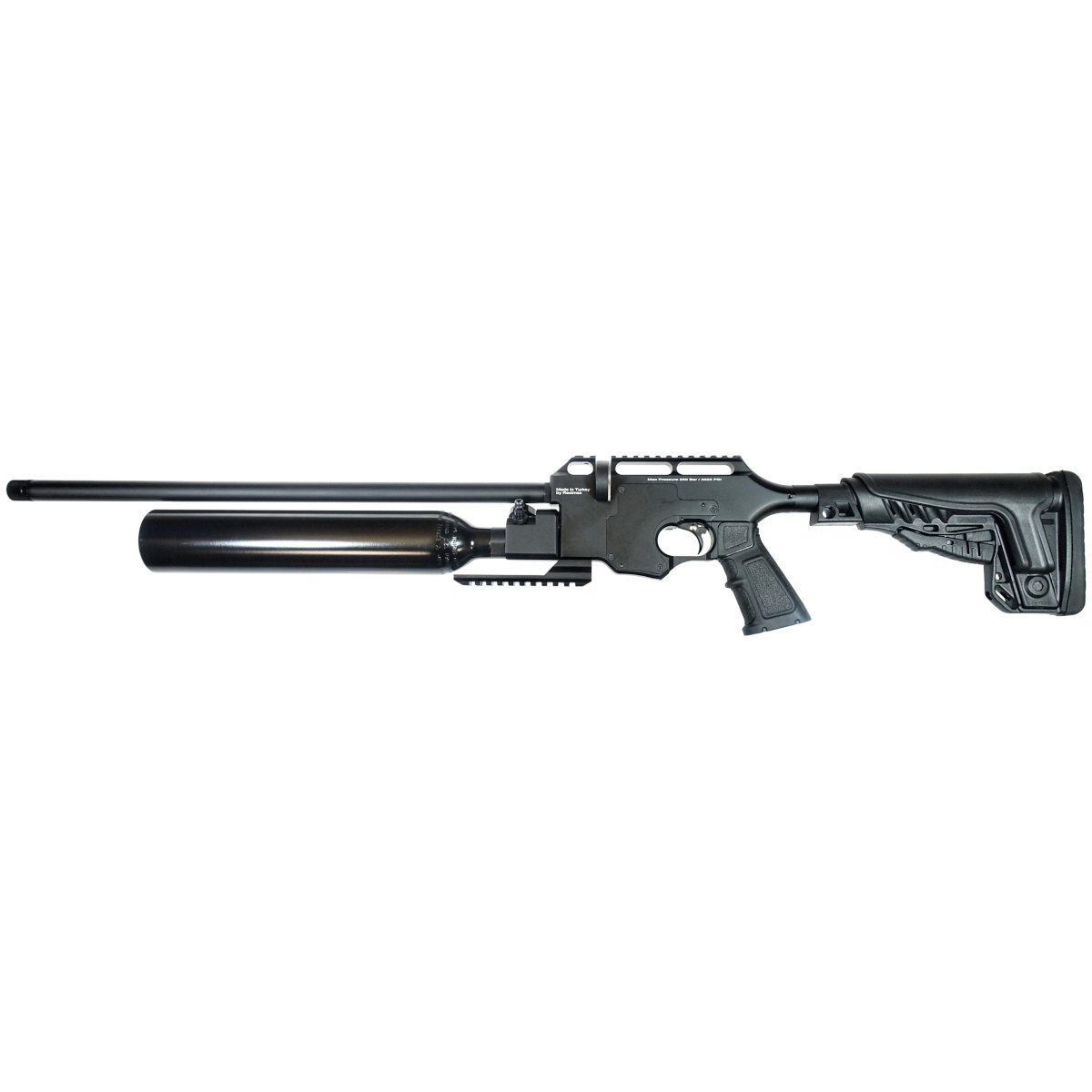 Zasilanie - sprężonym powietrzem ze znajdującego się pod lufą aluminiowego zbiornika ciśnieniowego o pojemności 500 cc (air tube bottle) i ciśnieniu roboczym 250 barów. Wbudowany manometr pozwala kontrolować ciśnienie znajdujące się w zbiorniku, a tym samym stopnień jego naładowania. Kartusz ładowany przy pomocy dołączonej do zestawu szybkozłączki.