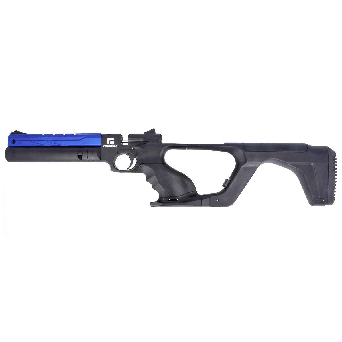 - Reximex RP Blue, sportowy pistolet PCP z regulatorem umożliwiającym oddawanie powtarzalnych strzałów. Regulowana szczerbinka i język spustowy. Zbiornik ciśnieniowy o poj. 50cc. Anatomiczna rękojeść z półką z możliwością mocowania kolby. Kal. 4.5mm, 5.5mm