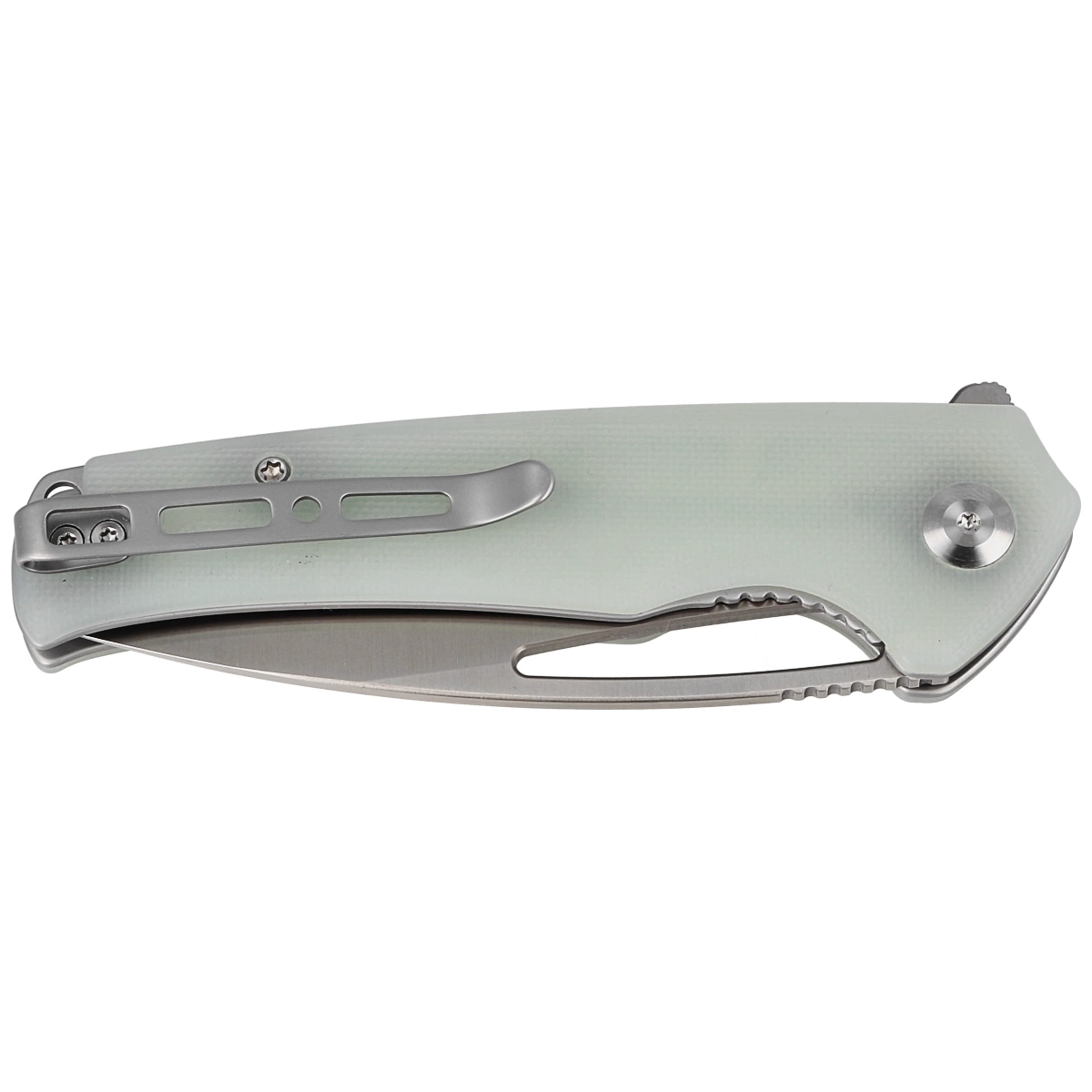 Głownia - typu Drop Point o smukłym brzuchu wykończona elegancką metodą Satin. Niewielka grubość klingi w połączeniu z wysokim, płaskim szlifem daje doskonałą geometrię krawędzi tnącej oraz ekstremalną wydajność cięcia. Ceramiczne łożyska kulkowe wspomagają płynną pracę mechanizmu otwierającego klingę, którą można otworzyć za pomocą szybkiej płetwy flippera (index-finger flipper) oraz podłużnego otworu w klindze. Po otwarciu płetwa tworzy mini-gardę zapobiegającą ześlizgnięciu się dłoni na ostrze. Całość blokowana jest solidną blokadą Liner Lock.