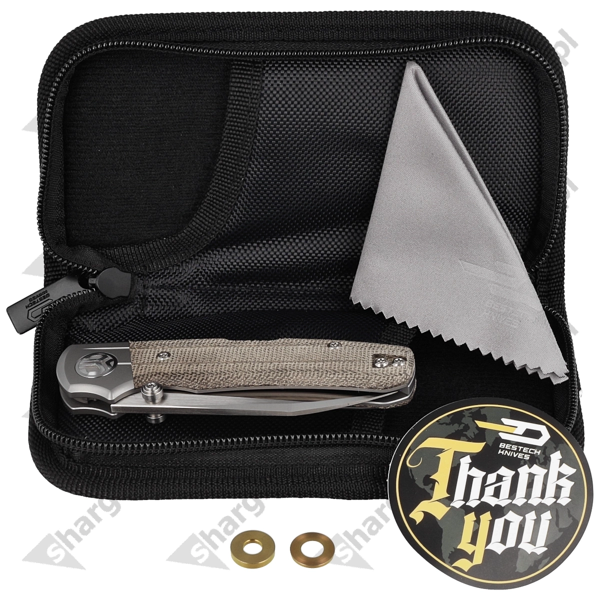 Nóż składany Bestech Tonic Grey Titanium/Green Canvas Micarta, Satin M390 by Colin Maisonpierre (BT2204C)