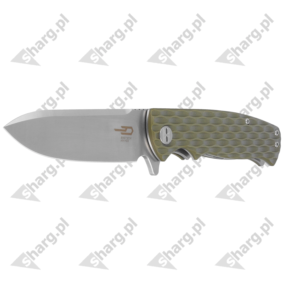 Grampus Olive G10, Stonewashed / Satin podręczny folder EDC o słusznym rozmiarze. Wykonany z charakterystyczną dla firmy Bestech starannością. Na rękojeści okładziny z G10, głownia ze sprawdzonej stali narzędziowej D2, a wszystko to w znakomitej cenie!
