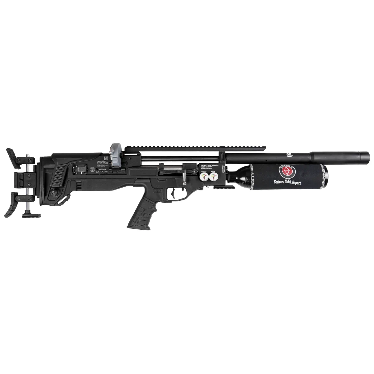 - Factor FT karabin PCP od Hatsan. Wyposażony w dźwignię napinania Side Lever, regulator mocy strzału, pokrętło regulacji mechanizmu spustowego, lufę ze zintegrowanym tłumikiem dźwięku QE. Dostępny w kalibrach .177 (4.5 mm), .22 (5.5 mm), .25 (6.35 mm)