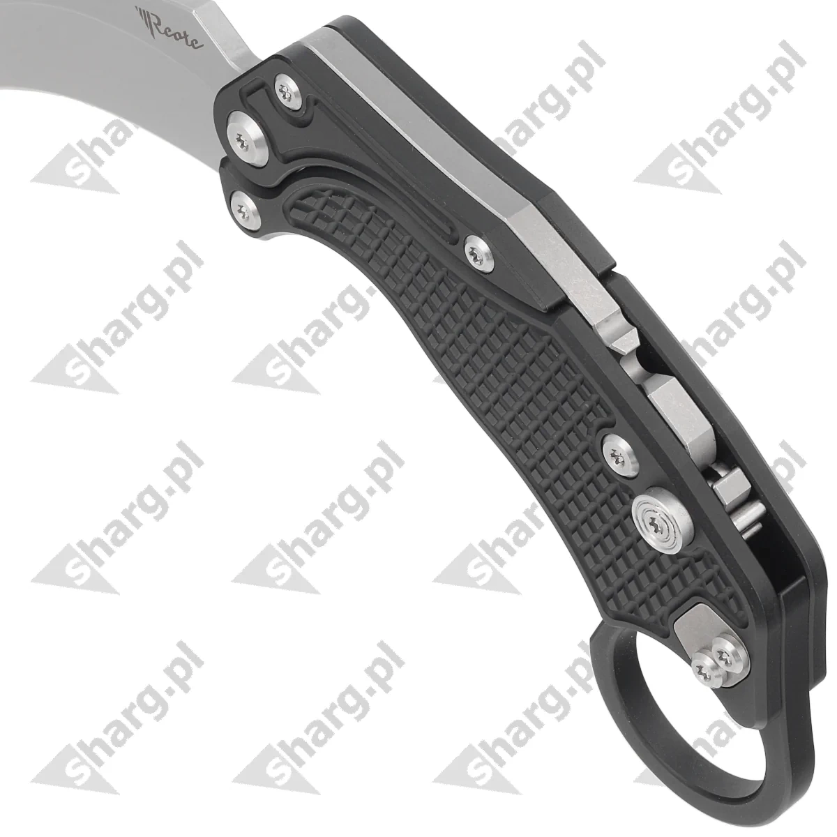 EXO-K Gravity Karambit Black Aluminium, Stonewashed pomysłowy nóż składany z legendarnej manufaktury Reate Knives. Popis inżynierów firmy w projektowaniu, karambit otwierany grawitacyjnie z blokadą button lock. Aluminiowa rękojeść, stal ostrza N690, nóż trenażer w zestawie!