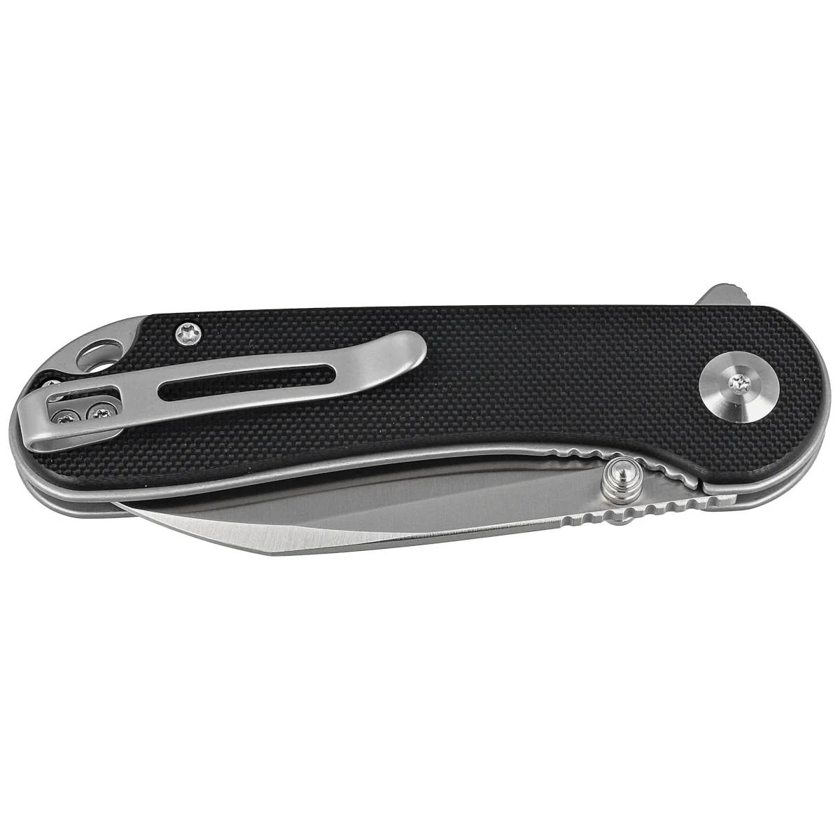 Ceramiczne łożyska kulkowe wspomagają płynną pracę mechanizmu otwierającego głownię, którą można otworzyć przy użyciu obustronnego kołka w klindze (dual thumb studs) lub za pomocą szybkiej płetwy flippera (index-finger flipper). Po otwarciu płetwa tworzy mini-gardę zapobiegającą ześlizgnięciu się dłoni na ostrze. Na grzbiecie klingi upper jimping, karbowane oparcie pod kciuk. Mechanizm blokady liner lock.