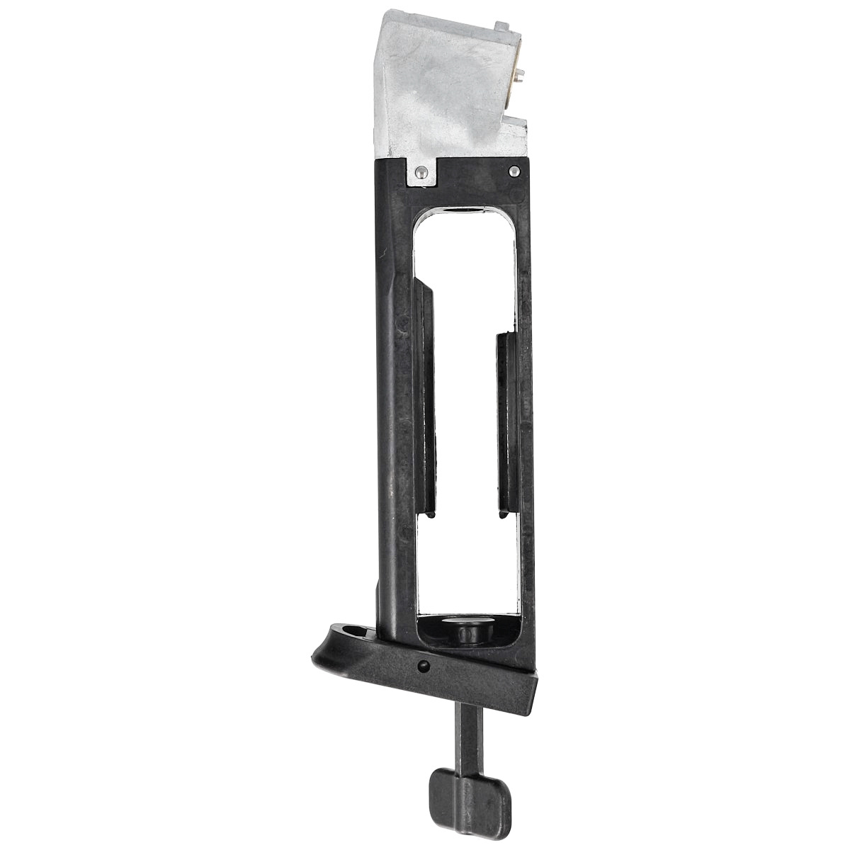 Magazynek - metalowy o pojemności 14 stalowych kulek BBs w kal. 4.5 mm. Waga amunicji rozkłada się równomiernie na całej długości magazynka. Należy używać wyłącznie śrutu stalowego BB.