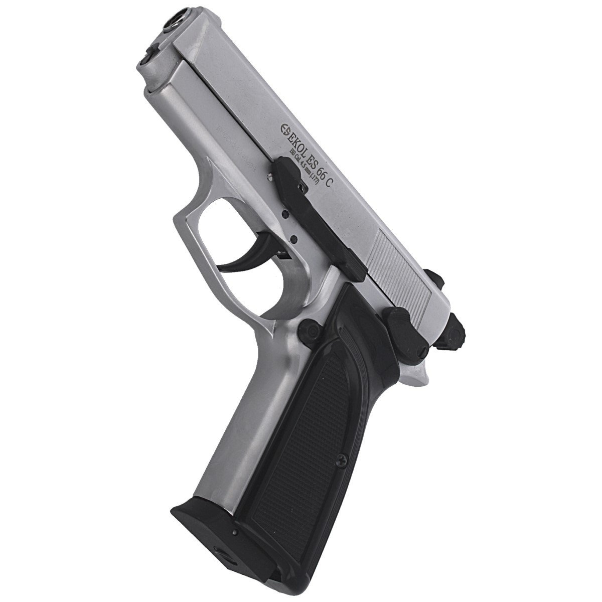 - Ekol ES 66C Srebrny - kompaktowy, samopowtarzalny pistolet pneumatyczny oparty konstrukcyjnie na broni sygnałowej. Dzięki silnym korzeniom, ta mocna wiatrówka 140 m/s nadaje się do dynamicznego strzelectwa i treningu taktycznego. Metalowy szkielet.
