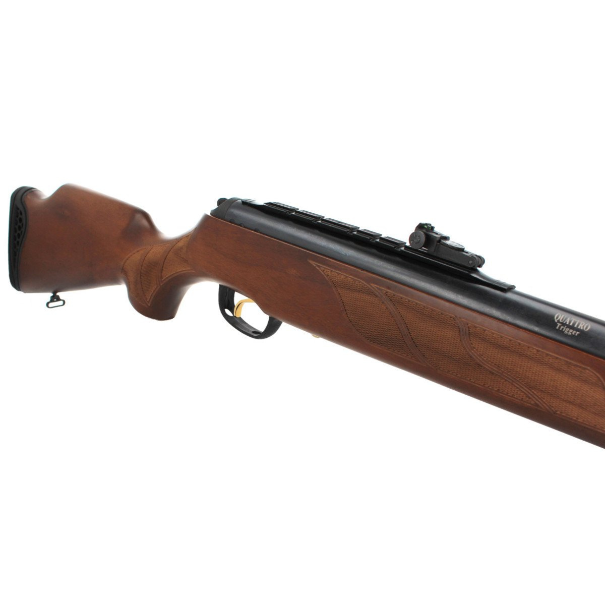 - Quattro Trigger legendarny 2-stopniowy w pełni regulowany mechanizm spustowy. Umożliwia regulację długości pierwszej drogi (jałowej) oraz drugiej drogi języka spustowego (Trigger Load) oraz regulację twardości (czułości / oporu) języka spustu (Trigger Pull). Proces dostosowania charakterystyki spustu zgodnie z własnymi preferencjami, jak i stylem strzelania w celu zapewnienia jak najlepszej celności, jest szybki i nieskomplikowany.