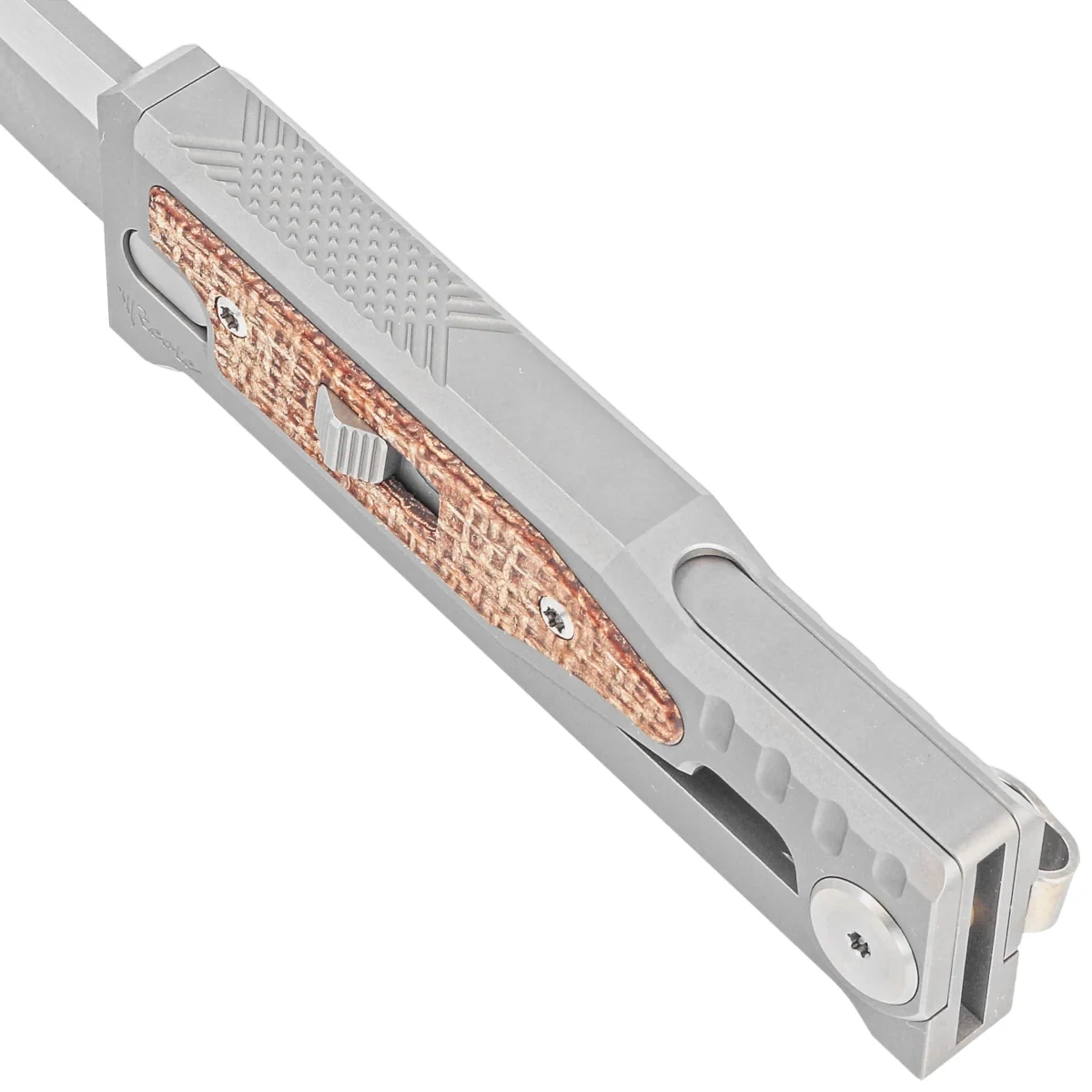Nóż grawitacyjny Reate Mini EXO OTF Gravity T/E Bead Blasted Titanium/Burlap Micarta, Stonewashed CPM 3V