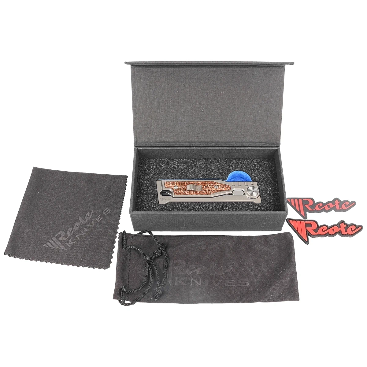 Mini EXO OTF Gravity Drop Point Bead Blasted Titanium/Burlap Micarta, Stonewashed pomysłowy nóż składany EXO z legendarnej manufaktury Reate Knives, popis inżynierów w projektowaniu. Gravity OTF (Out The Front) głownia wysuwana z przodu dzięki sile grawitacji. Wzorowany na konstrukcji grawitacyjnego noża lotniczego Luftwaffe, potocznie nazywanego nożem niemieckich spadochroniarzy. Intuicyjne wysuwanie / wsuwanie ostrza jedną ręką (pod wpływem siły ciężkości) oraz najlepsze materiały, perfekcyjnie połączone ze sobą z niezrównaną jakością marki Reate!
