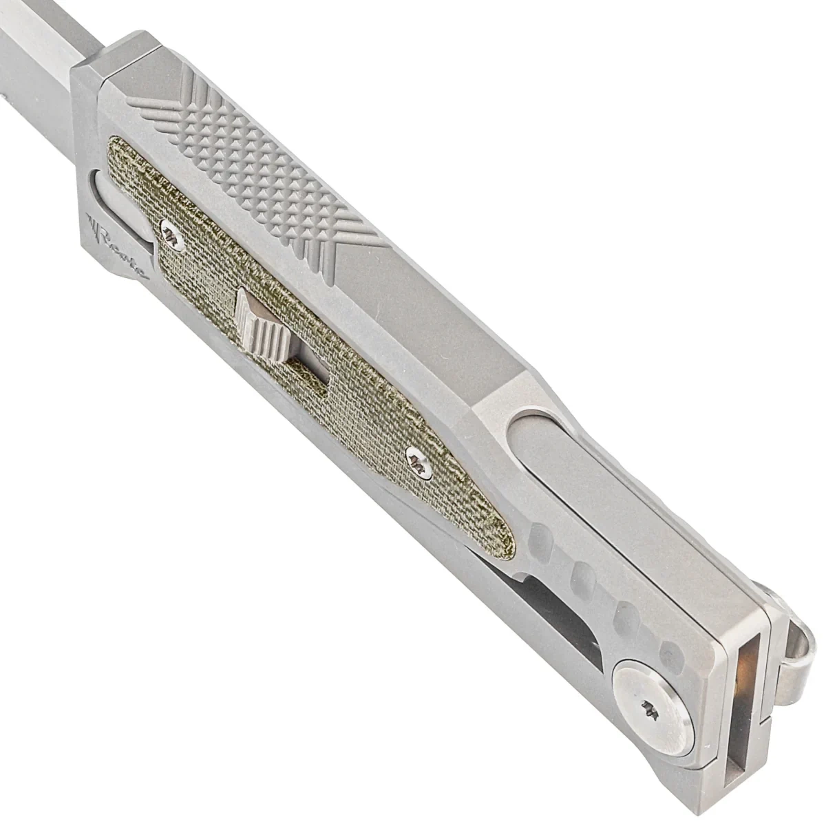 Nóż grawitacyjny Reate Mini EXO OTF Gravity T/E Bead Blasted Titanium/Green Micarta, Stonewashed CPM 3V