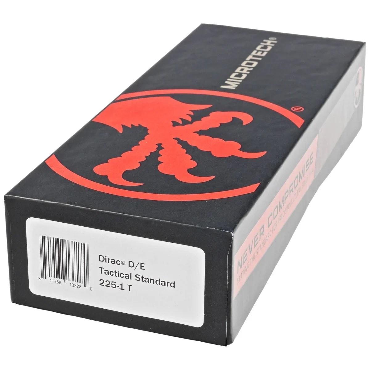 Dirac® - pierwszy automat OTF (Out The Front) D/A (Double Action) w ofercie Microtecha z suwakiem slidera umieszczonym w zagłębieniu rękojeści. Unowocześniona, ergonomiczna rękojeść z zakrzywionymi liniami podobnymi do HALO®. Zastosowano w tej linii charakterystyczne rozwiązania Microtecha® o ultra wysokiej jakości, takie jak opatentowane śruby, innowacyjny mechanizm wewnętrzny i zbijak do szyb. Przy całkowitej długości 7,25 cala, Dirac® doskonale się nadaje na nóż codziennego użytku (EDC).