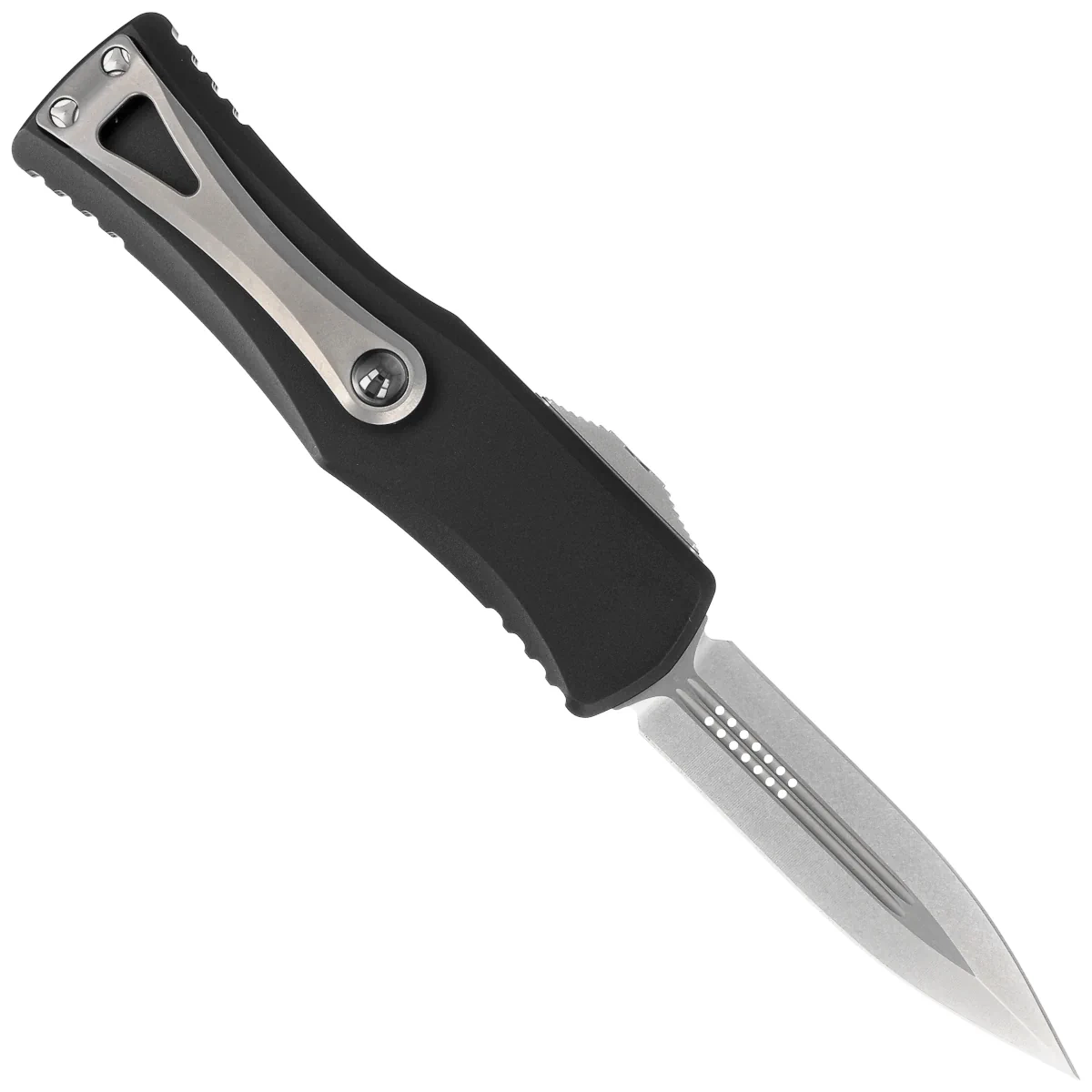 Hera Double Edge Black Aluminium, Stonewashed jeden z najlepszych i wszechstronnych noży automatycznych OTF (Out The Front). Wzorowany na kultowym automacie Troodon, stanowi pośrednie ogniwo pomiędzy modelami EDC a taktycznymi. Automat o ponadprzeciętnej wytrzymałości pracuje w trybie D/A (Double Action) wykorzystując działający z ogromną siłą i mocą, mechanizm otwierający. Ten model charakteryzuje się doskonałym dopasowaniem i wspaniałym wykończeniem. Projekt Anthony'ego Marfione knifemakera i właściciela Microtech Knives.
