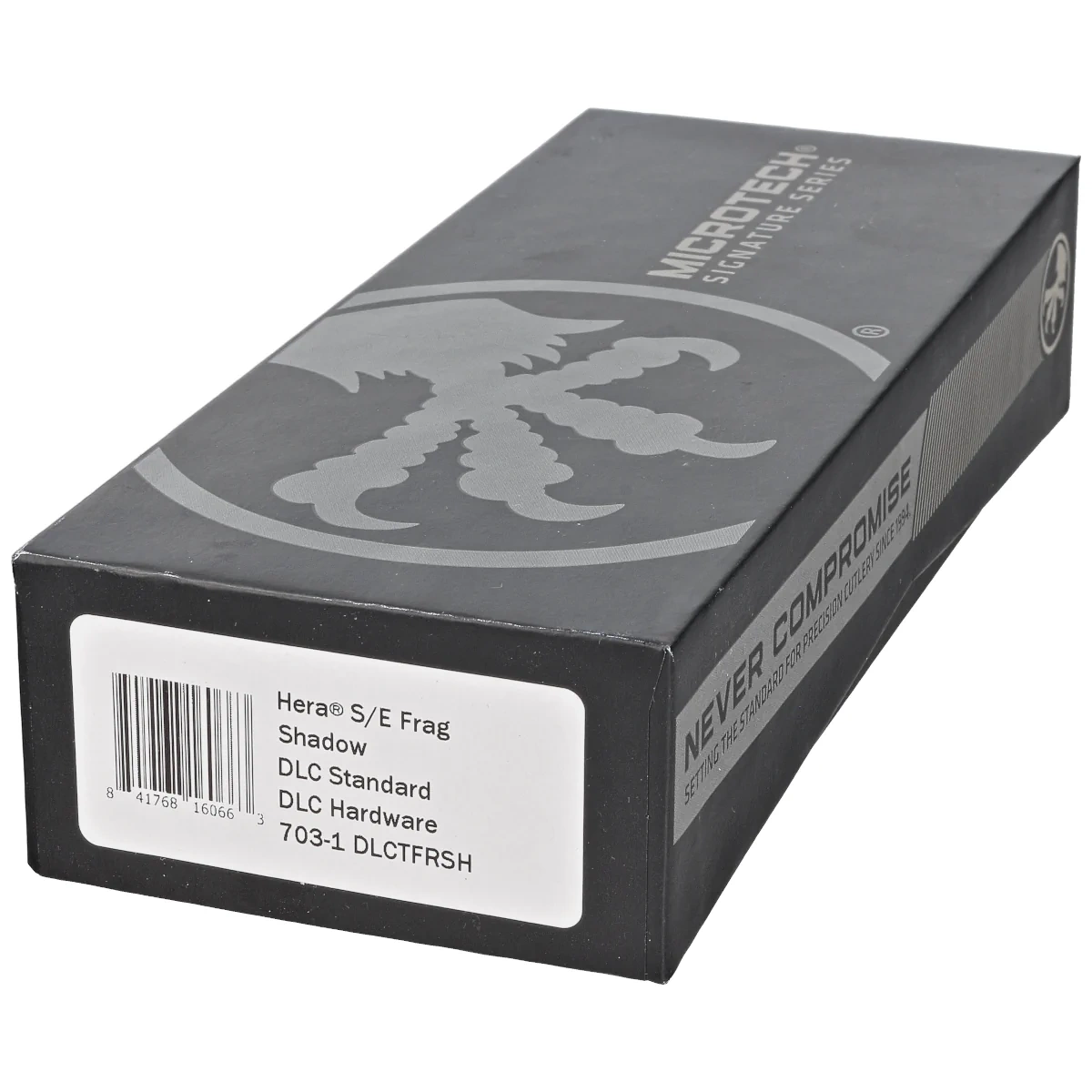- Hera S/E Frag Signature Black Aluminium Shadow, Black DLC jeden z najlepszych noży automatycznych OTF. Wygodny do przenoszenia, przy zachowaniu mocy większych modeli. Projekt Anthony'ego Marfione knifemakera i właściciela Microtech Knives.