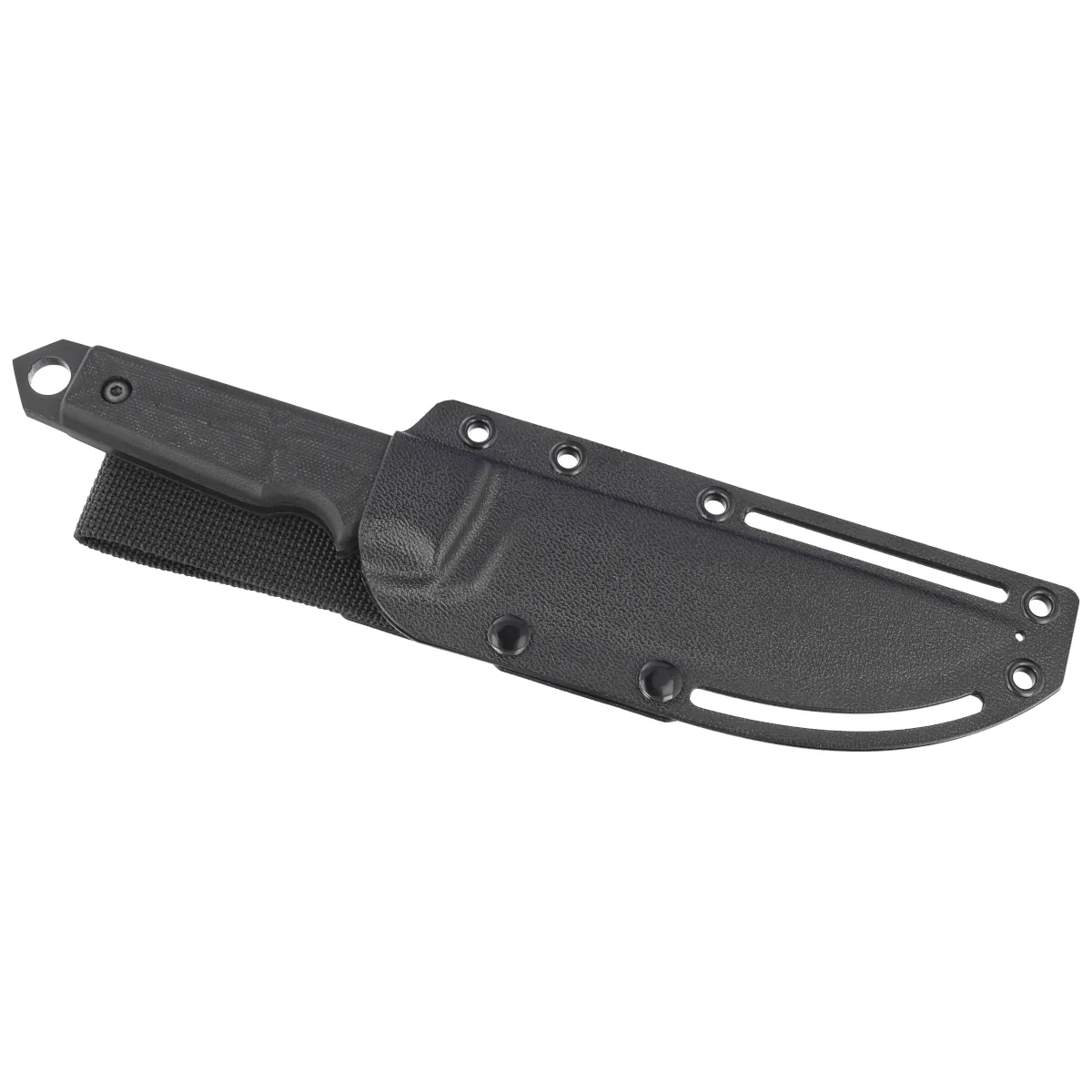 Pochwa - Kydex Loop. Przedłużana, chroniąca głownię wraz z częścią rękojeści, wykonana z tworzywa Kydex. Mocowanie do pasa za pomocą pętli umożliwia przenoszenie noża w pozycji pionowej.