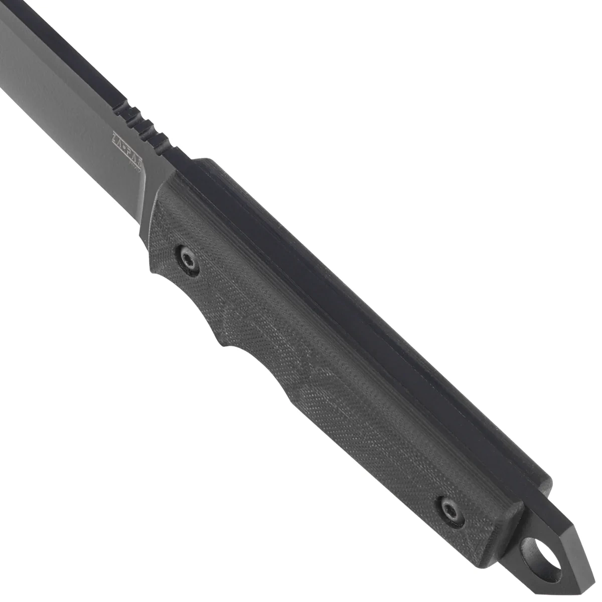 Urban Tactic Black G10, Black Cerakote nóż taktyczny polskiej manufaktury ZA-PAS Knives, odpowiedni na każdą wyprawę w teren. Ze względu na swoje wymiary oraz wytrzymałość, bez utraty cech pełnowymiarowego noża bushcraftowego. Nóż outdoorowy o konstrukcji full tang z głownią ze stali narzędziowej NMV, skierowany do pasjonatów survivalu, myślistwa, miłośników każdej pozostałej aktywności w terenie.