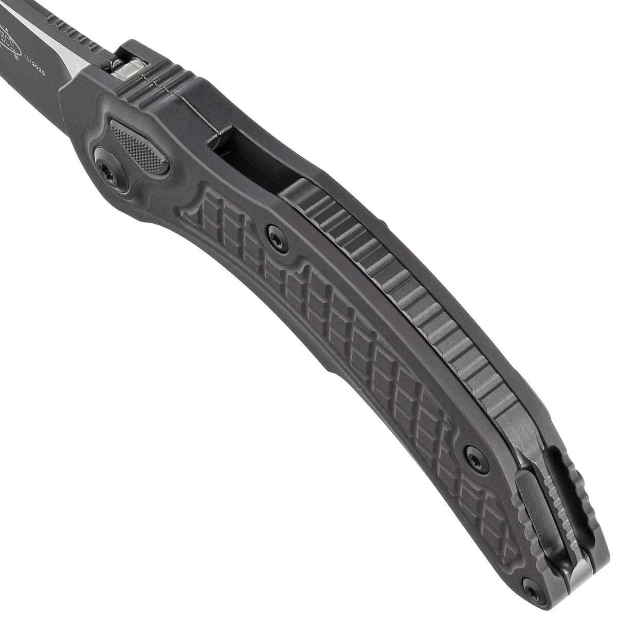 Brachial Black Aluminium, Black automatyczny nóż składany premium z perfekcyjnie wykonaną rękojeścią, która zapewnia niezrównany komfort podczas użytkowania. Ręcznie szlifowane i ostrzone ostrze, składane przez wykwalifikowanych rzemieślników zapewnia wyczucie i wyjątkowe możliwości cięcia. Folder scala w sobie niezwykle mocną budowę, świetne materiały oraz legendarną jakość wykonania z której słynie kultowa marka Microtech. Efekt współpracy Bastiena Covesa i Anthony'ego Marfione, właściciela Microtech Knives.