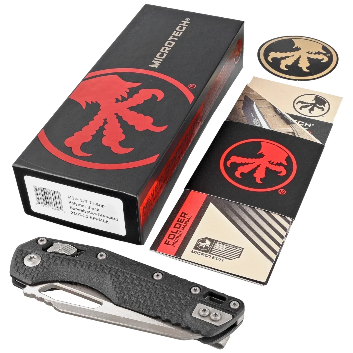 Nóż składany Microtech MSI S/E Ram-Lok Black Tri-Grip Polymer, Apocalyptic M390MK by Tony Marfione (210T-10APPMBK)