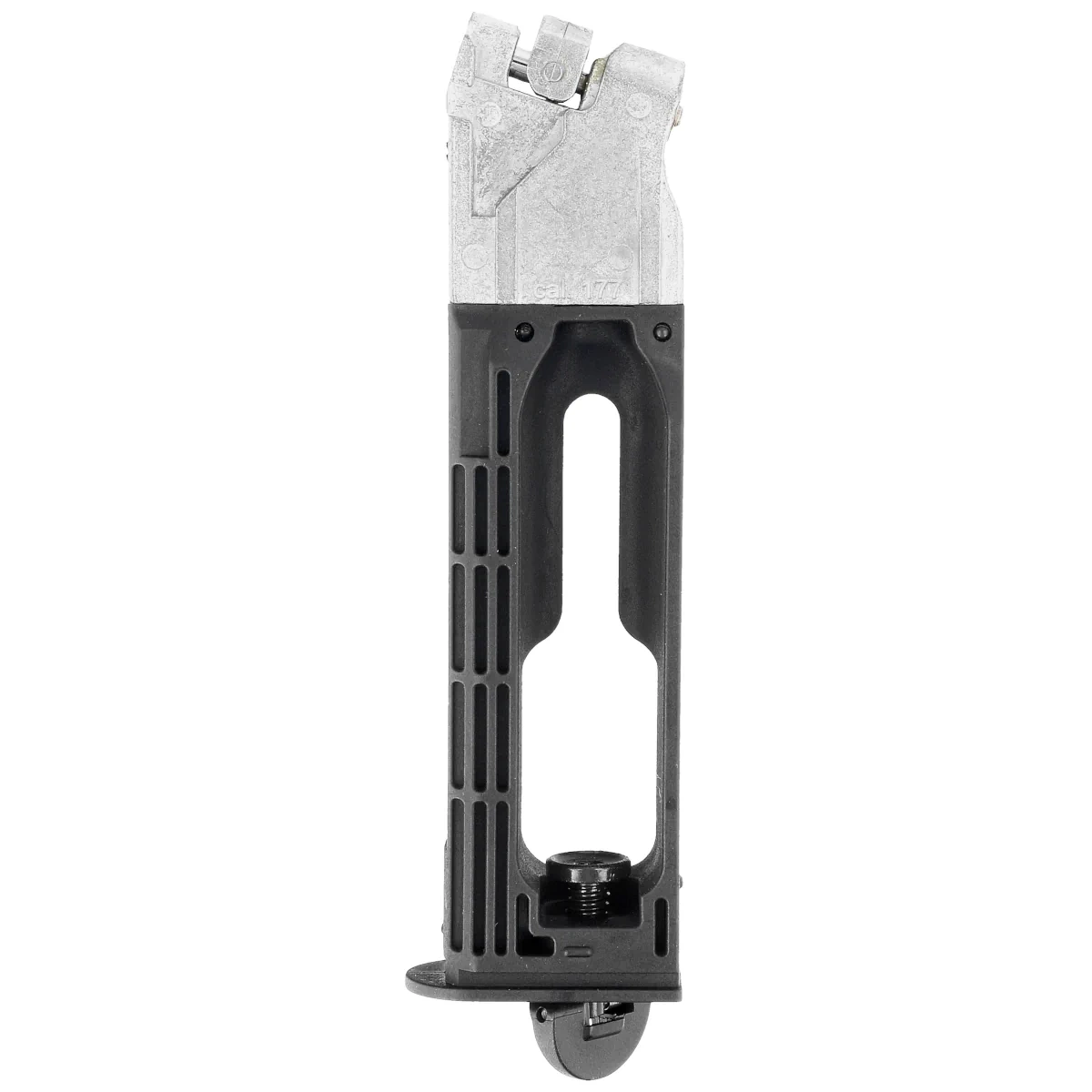 Magazynek – pistolet wyposażony jest w magazynek o pojemności 23 stalowych kulek BB kalibru 4,5 mm (.177), co pozwala na dłuższe sesje strzeleckie bez częstego przeładowywania.