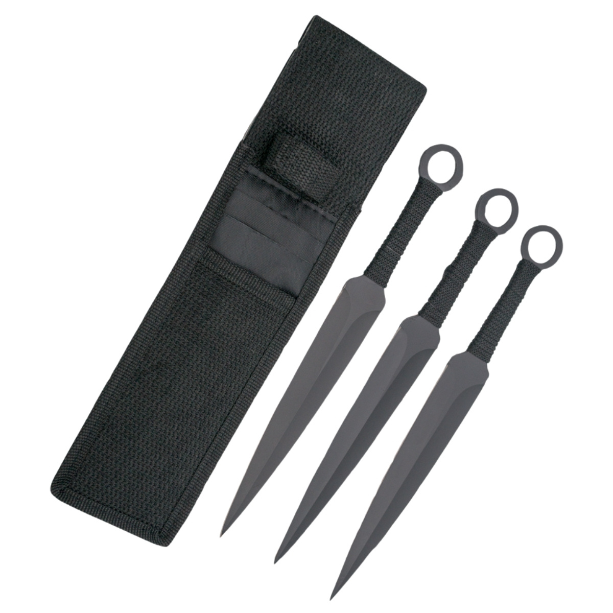 - Służące do rzucania noże Kunai niegdyś stanowiły broń japońskich wojowników oraz młodych adeptów sztuk walki. Zakończona pierścieniem poręczna rękojeść z nylonowym oplotem cord wrap i smukłe ostrze z krawędzią schodzącą do czubka. Kpl 3 szt.