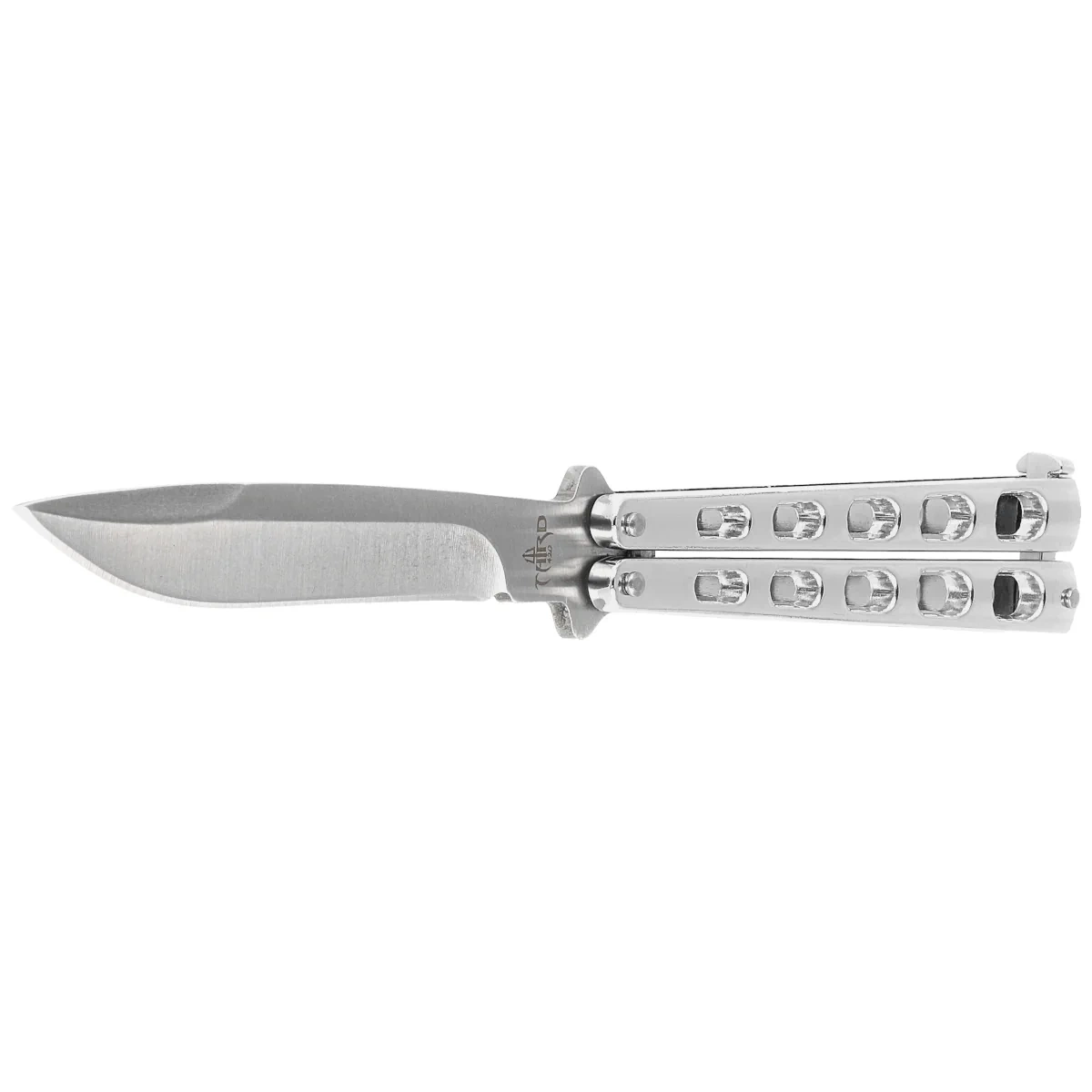 - Praktyczność: Składana konstrukcja motylka sprawia, że Balisong Silver Stainless Steel, Satin jest łatwy do przenoszenia i przechowywania.