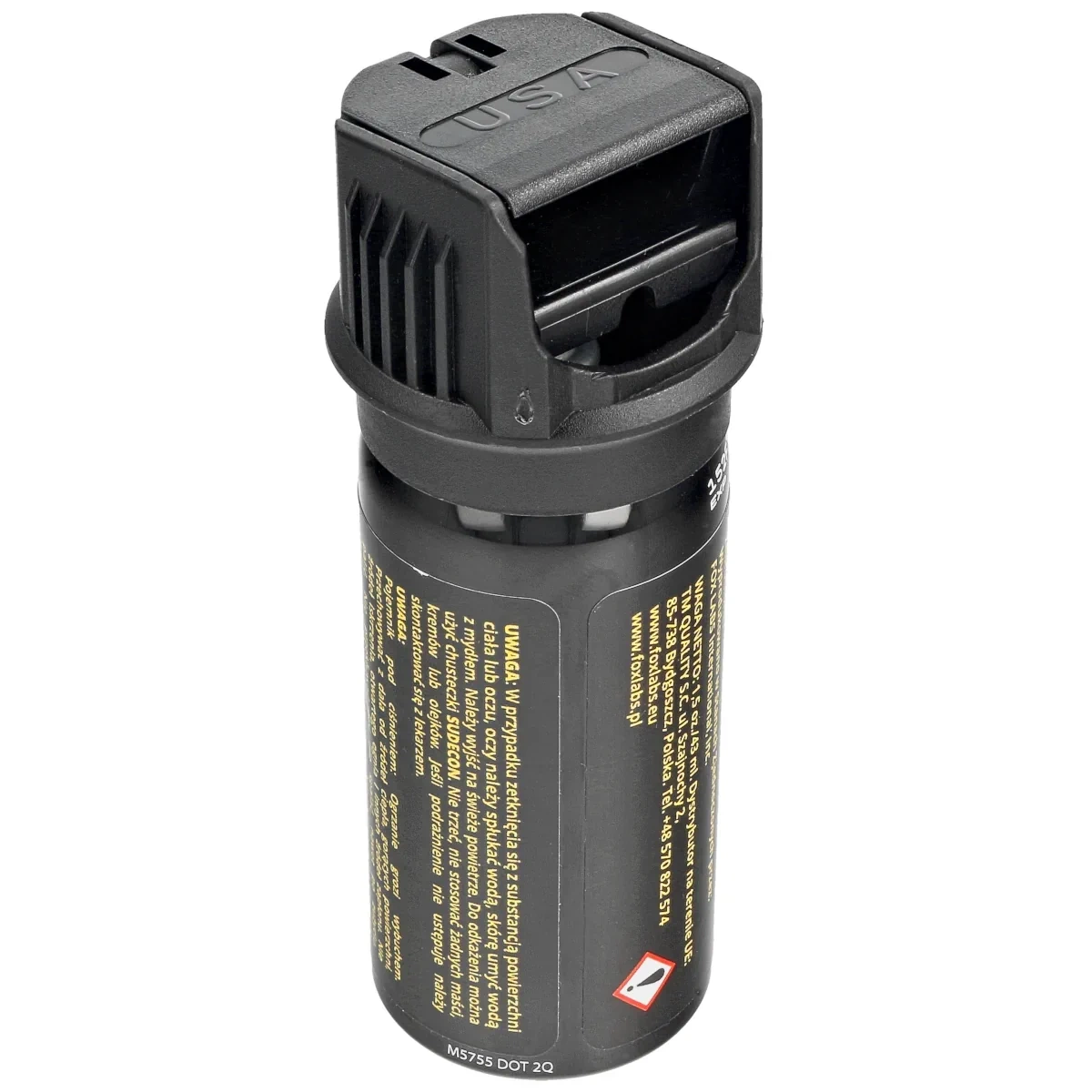 Five Point Three "Lite" 2% Cone Fog 43 ml to lżejsza formuła gazu pieprzowego Fox Labs z substancją czynną o stężeniu 2% OC. Dla tych, którzy nie muszą używać oryginalnego Five Point Three Legacy 5.3 mln SHU stosowanego przez organy ścigania. Zawiera niewidoczny znacznik UV umożliwiający identyfikacje napastnika.