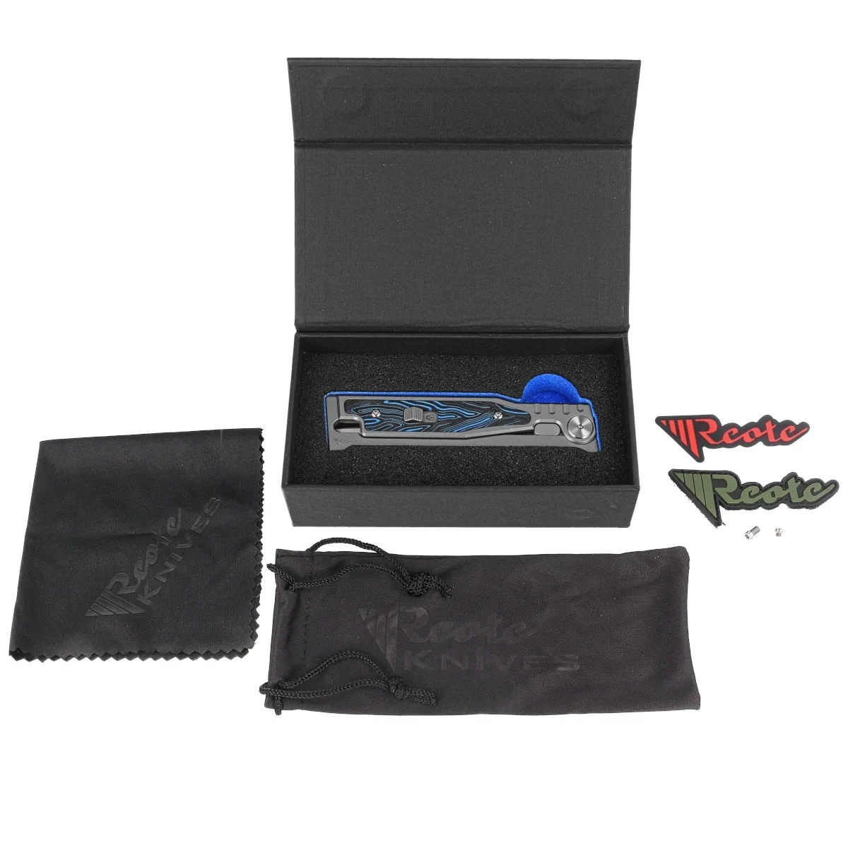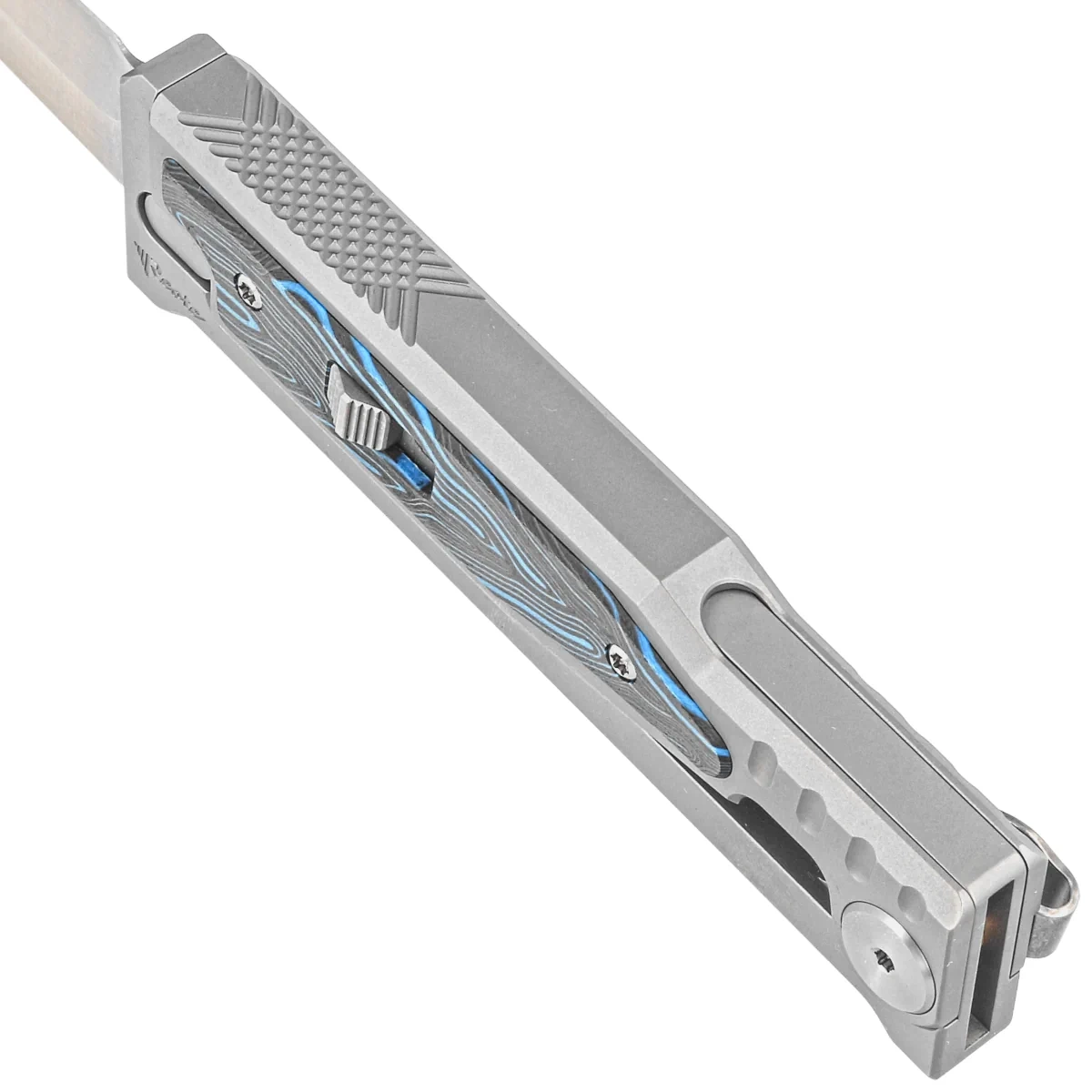 Nóż grawitacyjny Reate EXO-M OTF Gravity D/E Bead Blasted Titanium/Damascus Blue-Black G10, Satin Elmax
