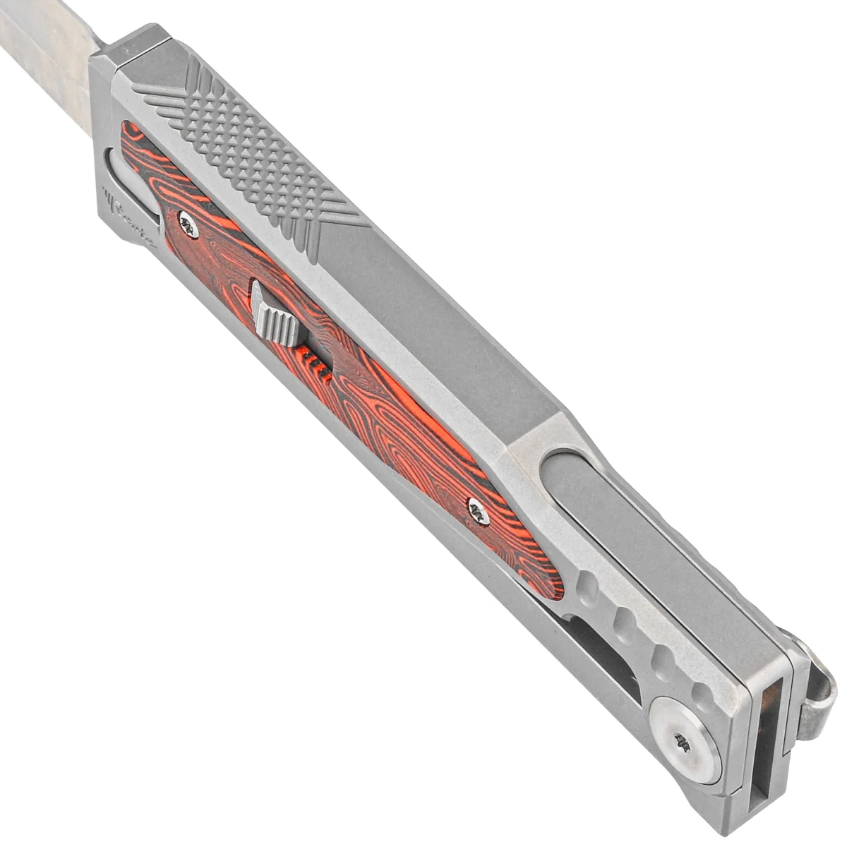 Nóż grawitacyjny Reate EXO-M OTF Gravity D/E Bead Blasted Titanium/Damascus Red-Black G10, Satin Elmax