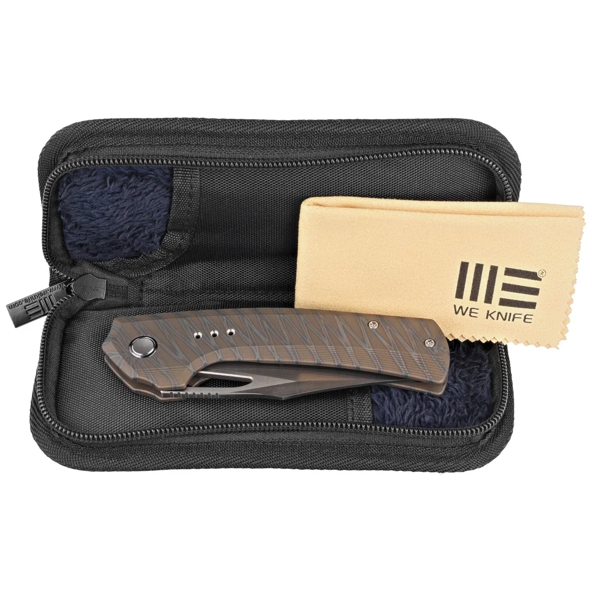 Nóż składany WE Knife Nefaris LE No 051/160 Tiger Stripe Titanium, Hand Rubbed Satin CPM 20CV (WE22040D-4)
