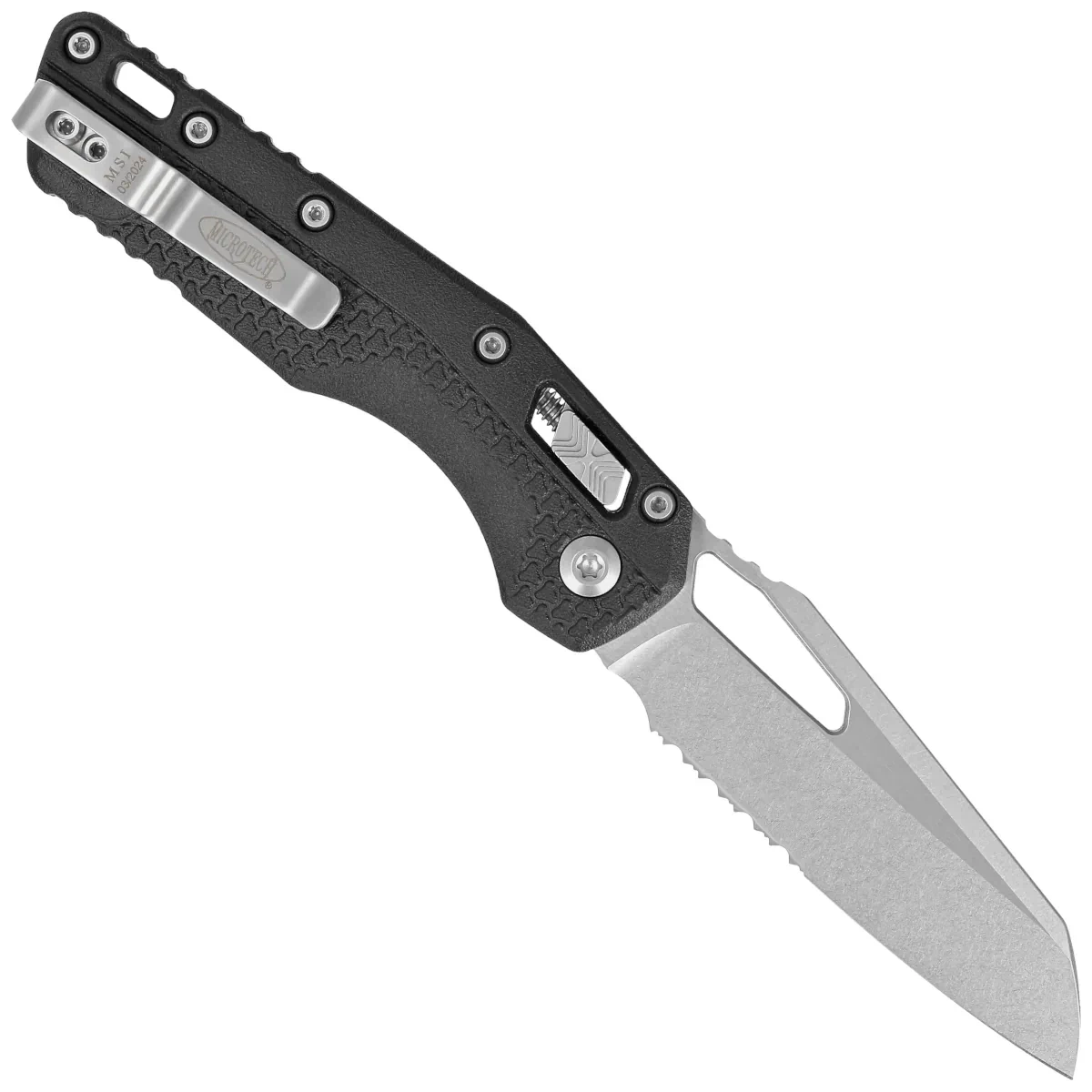 Nóż składany Microtech MSI S/E Ram-Lok Black Tri-Grip Polymer, Stonewashed P/S M390MK by Tony Marfione (210T-11PMBK)