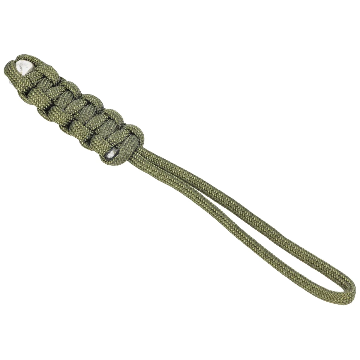 • Bestech Skull Paracord Lanyard Army Green, przywieszka do noża, latarki, breloka, wykonana z paracordu, zakończona metalową czaszką. Oprócz walorów estetycznych dekoracyjnego splotu, przedłuża rękojeść noża ułatwiając wyciągnięcie go z kieszeni.
