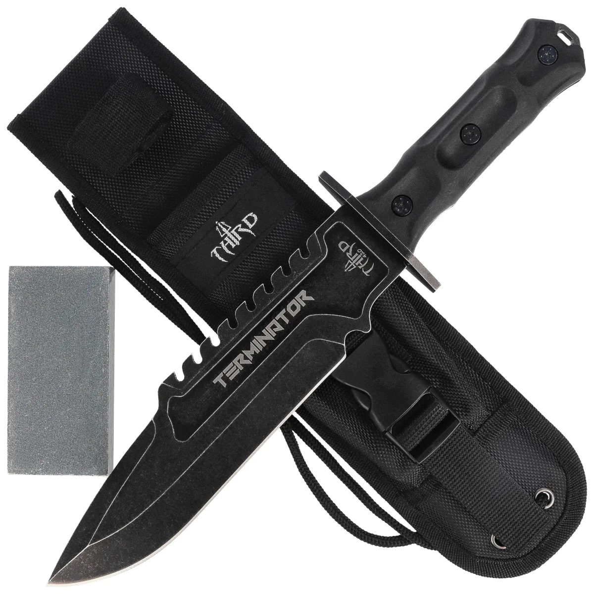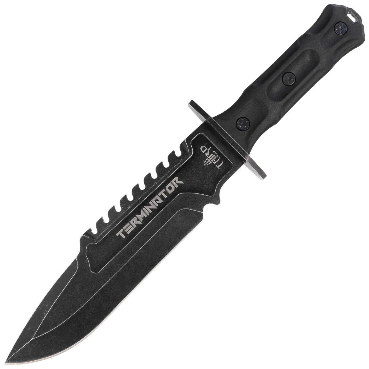 • Terminator Black Rubberized ABS, Stonewashed – solidny nóż użytkowy o taktycznej estetyce, z głownią ze stali nierdzewnej 420 i ergonomicznie ukształtowaną rękojeścią z gumowanego ABS-u. Funkcjonalny, trwały i gotowy na wymagające zadania terenowe.