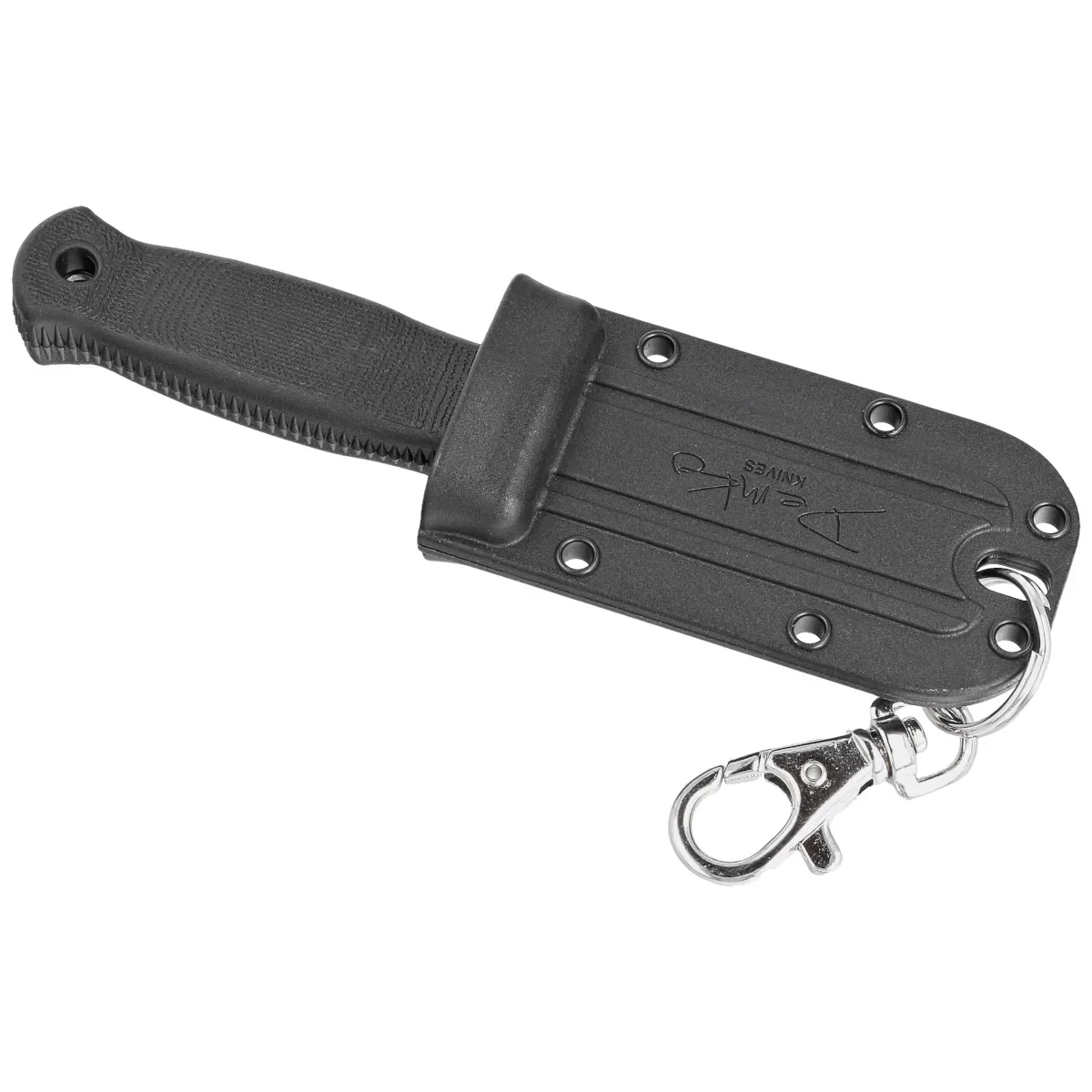 Pochwa - z kydexu, przedłużana. Dzięki dodawanemu do niej karabińczykowi możemy ją np. przypiąć do kluczy czy do szlufki na pasek w spodniach.