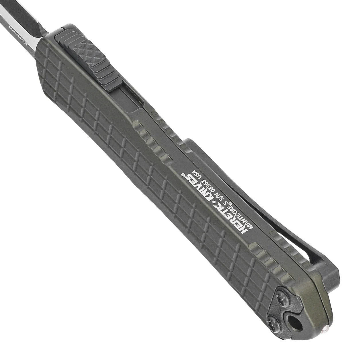 Nóż automatyczny OTF Heretic Manticore S D/E Green Frag Aluminium, Black/Satin MagnaCut by Tony Marfione Jr.