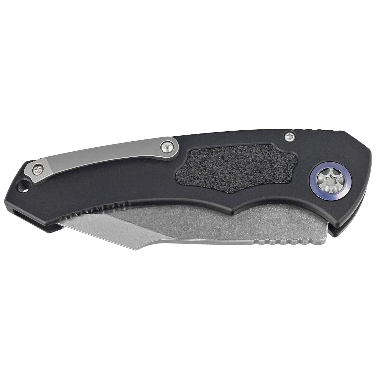Pariah Auto Black Aluminium, Stonewashed to wyjątkowy nóż automatyczny z serii Pariah, który z pewnością wyróżnia się na tle innych noży. Ergonomiczna, aluminiowa rękojeść z perfekcyjnie dopasowanymi wkładkami z tworzywa o fakturze papieru ściernego zapewnia komfort i pewność chwytu. Głownie wykonano z uznawanej obecnie za najlepszą stal na noże CPM MagnaCut. Zaprojektowany z myślą o wydajności w pracy, łączy w sobie elegancję i funkcjonalność. Wyrafinowane detale czynią go nie tylko praktycznym narzędziem, ale także wyjątkowym dodatkiem, który zasługuje na miejsce w każdej kolekcji noży. Precyzja wykonania jakość materiałów czynią go nie tylko praktycznym narzędziem, ale także dziełem sztuki użytkowej. Bez względu na to, czy jesteś kolekcjonerem noży, czy szukasz niezawodnego narzędzia do codziennego użytku, Pariah Auto to nóż, który z pewnością przekroczy Twoje oczekiwania, to wyjątkowe doświadczenie, które na nowo definiuje, czym może być nóż automatyczny.