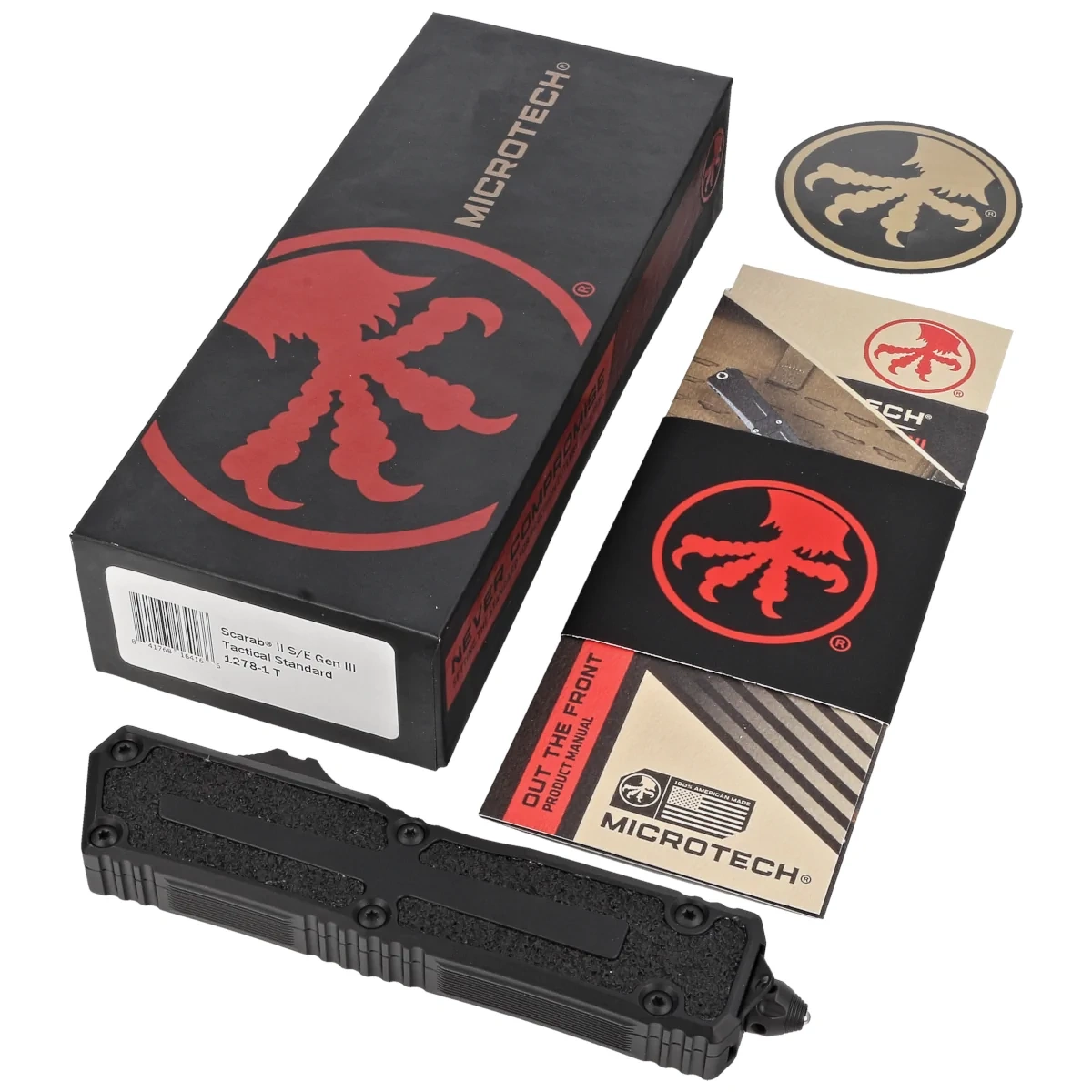 Nóż automatyczny OTF Microtech Scarab II Gen III S/E Black Aluminium, Tactical M390MK by Tony Marfione (1278-1T)