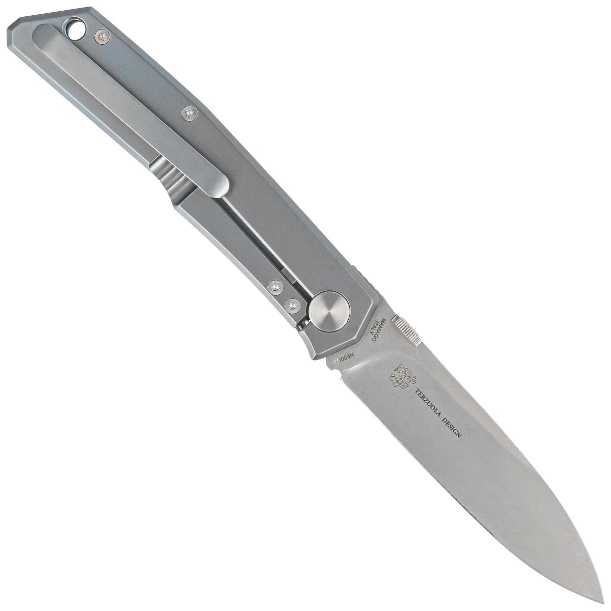 • The Sicilian Blue Titanium, Stonewashed, smukły gentleman's folder zaprojektowany przez legendę światowego knifemakingu, Boba Terzuolę. Proste linie, wysoka użytkowość, bardzo dobre materiały. Do tego znakomita jakość wykonania rzemieślników z Maniago!