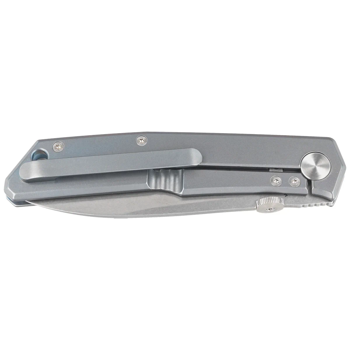 Rękojeść - fazowane okładziny z tytanu, lekko profilowane. Otwarta konstrukcja tzw. open-backed mocowana do siebie stalowymi tulejami dystansowymi zmniejsza wagę oraz ułatwia czyszczenie. Prosta, solidna konstrukcja daje pewność wieloletniego użytkowania. W tylnej części znajduje się lanyard hole, czyli miejsce na linkę zabezpieczającą lub ozdobną. Jednopozycyjny (prawa) tytanowy klips pozwala przenosić dyskretnie nóż w kieszeni w pozycji tip-up (czubkiem ostrza do góry).