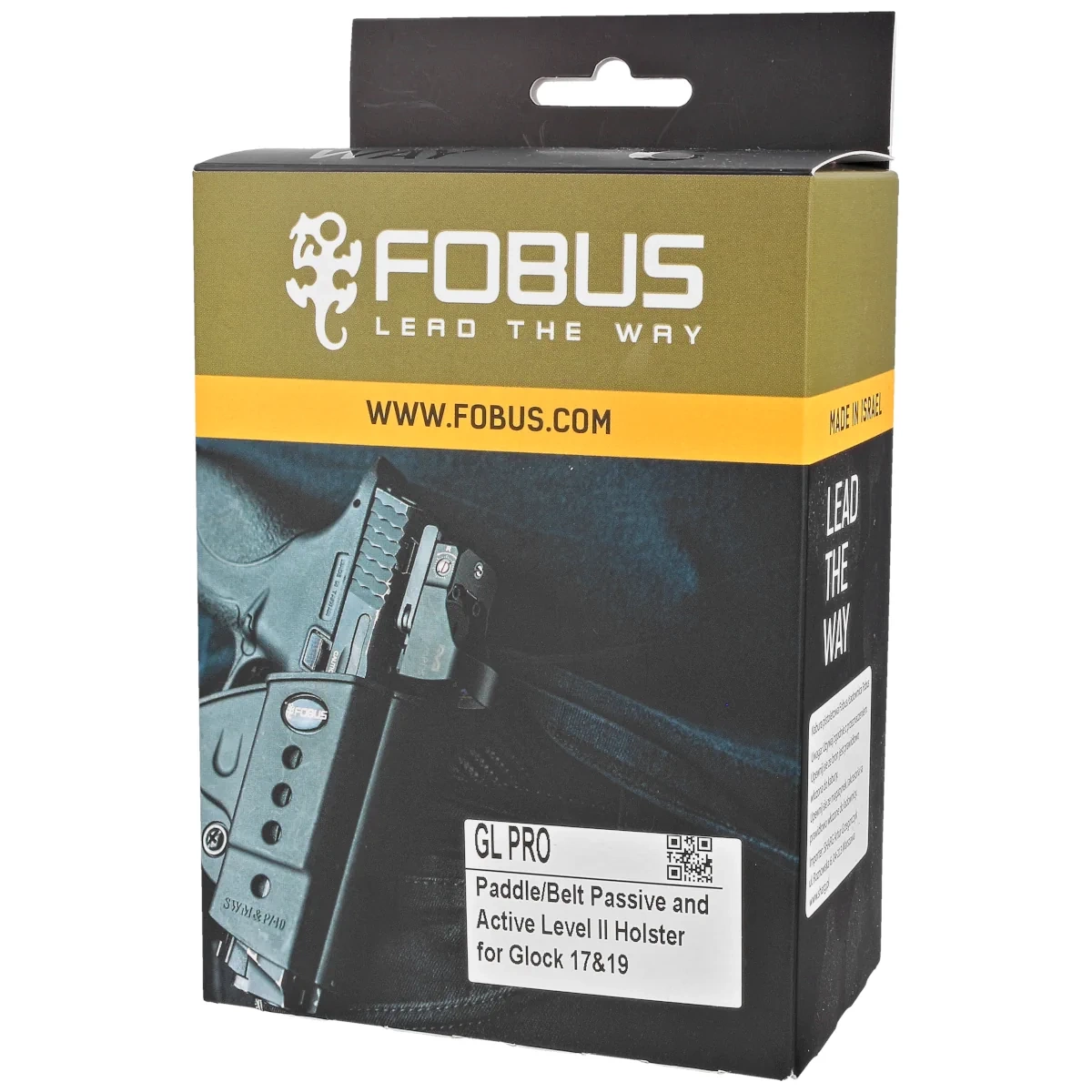 GL PRO otwarta kabura zewnętrzna OWB (Outside the Waist Band) izraelskiej firmy Fobus przystosowana do przenoszenia na pasie. Seria PRO stawia na bezpieczeństwo oraz wygodę użytkowania. Posiada blokadę dobycia broni z możliwością łatwego przełączenia między trybem aktywnym a pasywnym (z dodatkową regulacją siły docisku). Zaprojektowana do broni z zamontowanym kolimatorem oraz podwyższoną muszką. Wytrzymały polimer zabezpiecza broń przed uszkodzeniem. Zaprojektowana na nowo gumowana płetwa z wcięciem na pasek 45mm zapobiega przemieszczaniu się broni. Wersja dla osób praworęcznych.