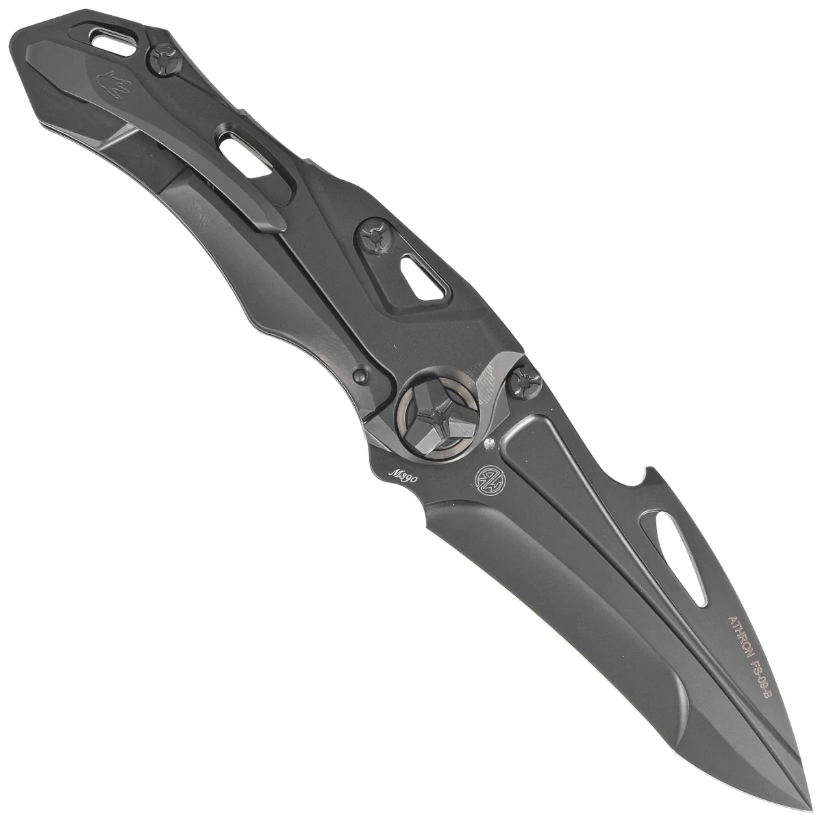 - Athron B Black DLC Titanium, Black DLC, pełen rozmachu projekt Declynxa dla firmy RikeKnife. Inspiracją dla kształtu głowni była czaszka dinozaura. Rękojeść z tytanu, klinga ze stali Böhler M390. Świetny kompan który nikogo nie pozostawi obojętnym!